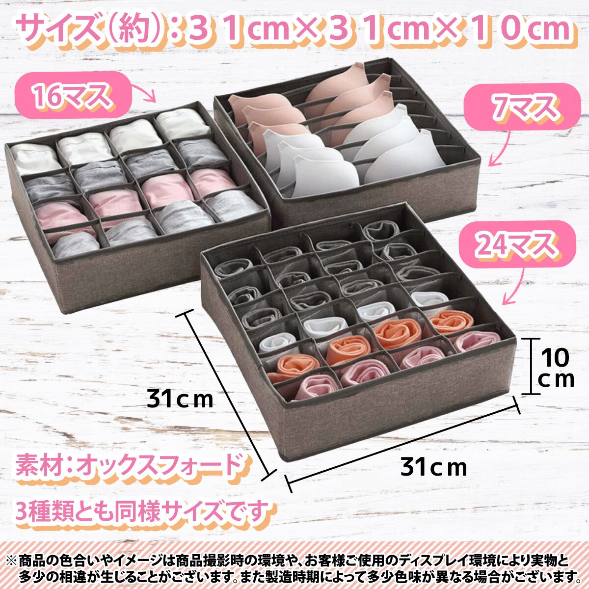 7マス・16マス・24マスの3点セットなので、様々なお品物、サイズに対応できます。