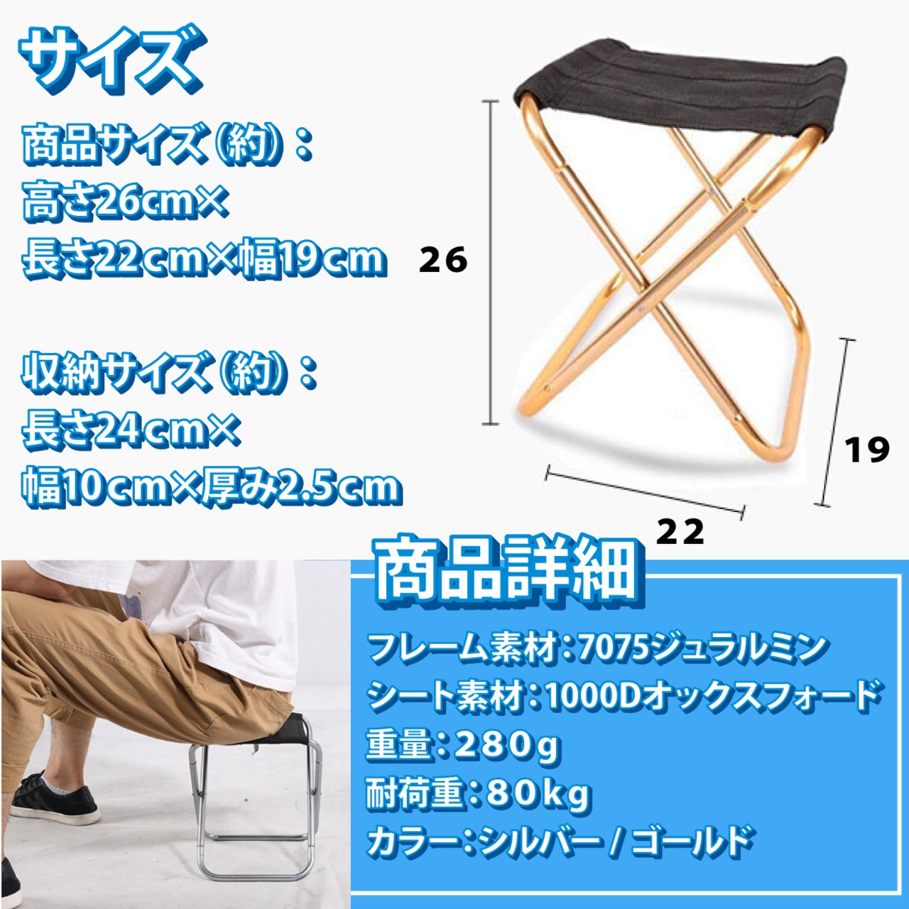 アウトドア等で活躍する折りたたみ式のイスです。