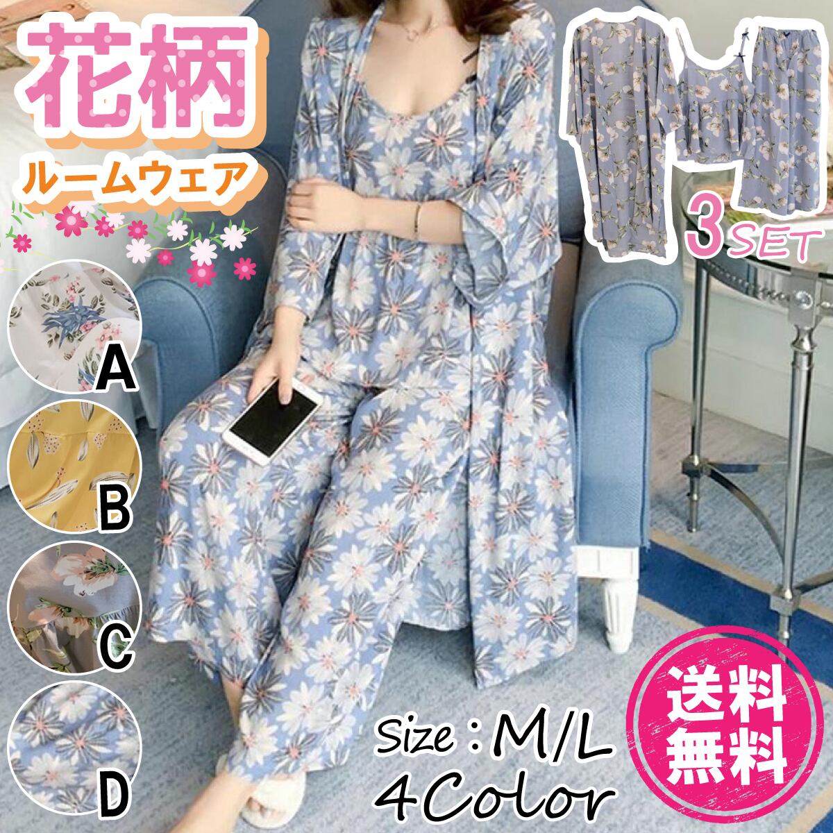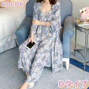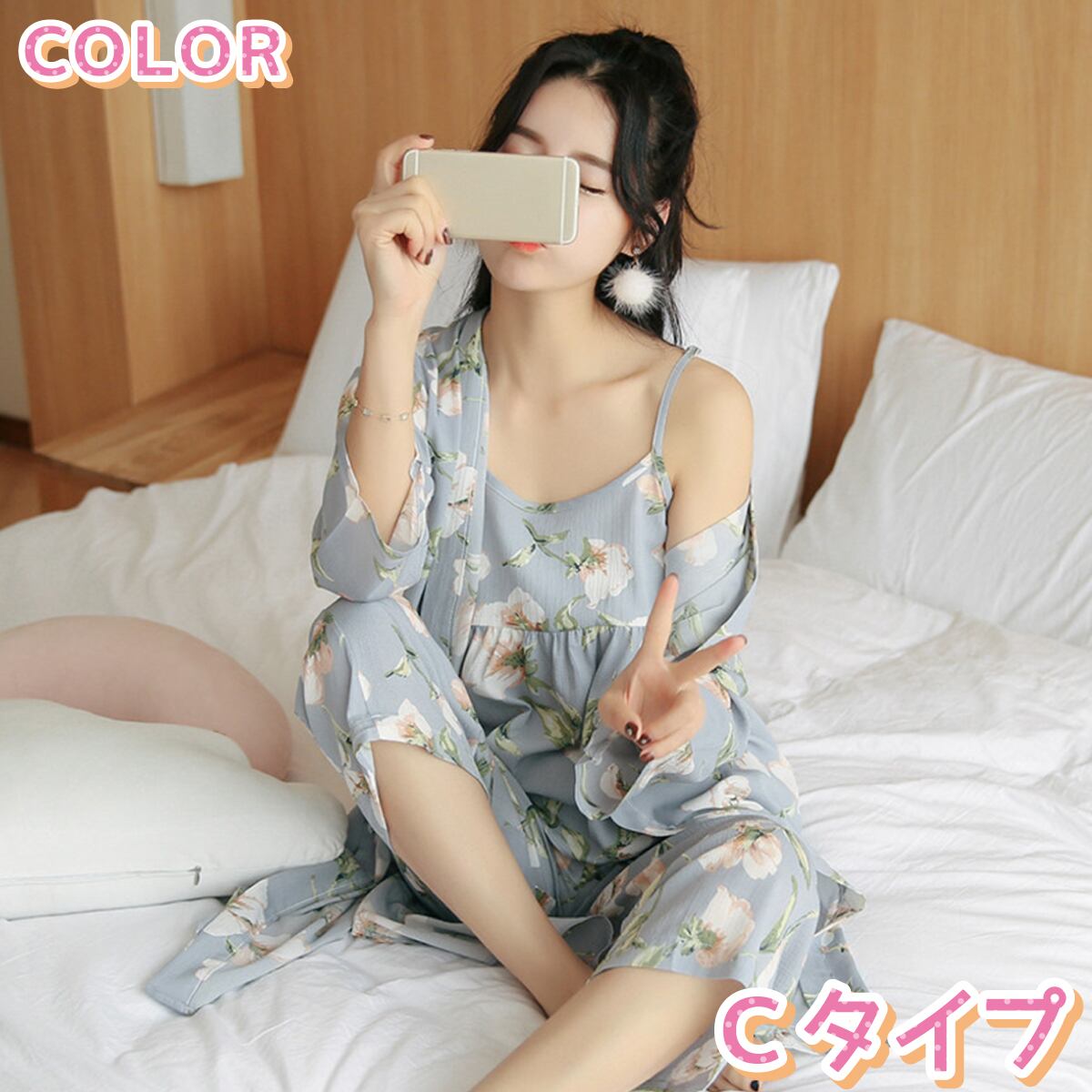 パンツとキャミソールの上下セットに加え、寒いときにもサッと羽織れるガウンの3点セットです。