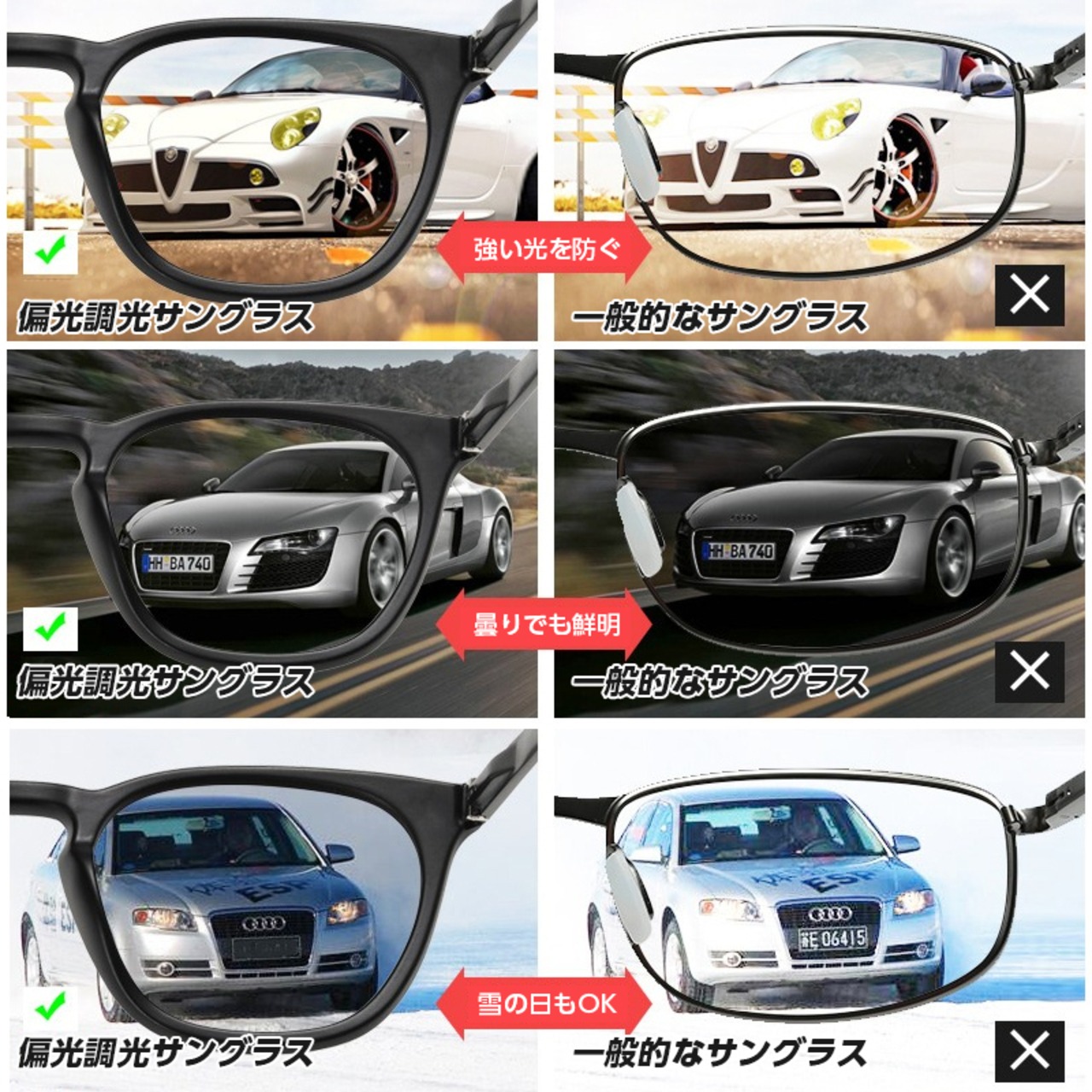 偏光・調光・UVカットの3つの機能が備わったサングラスです。