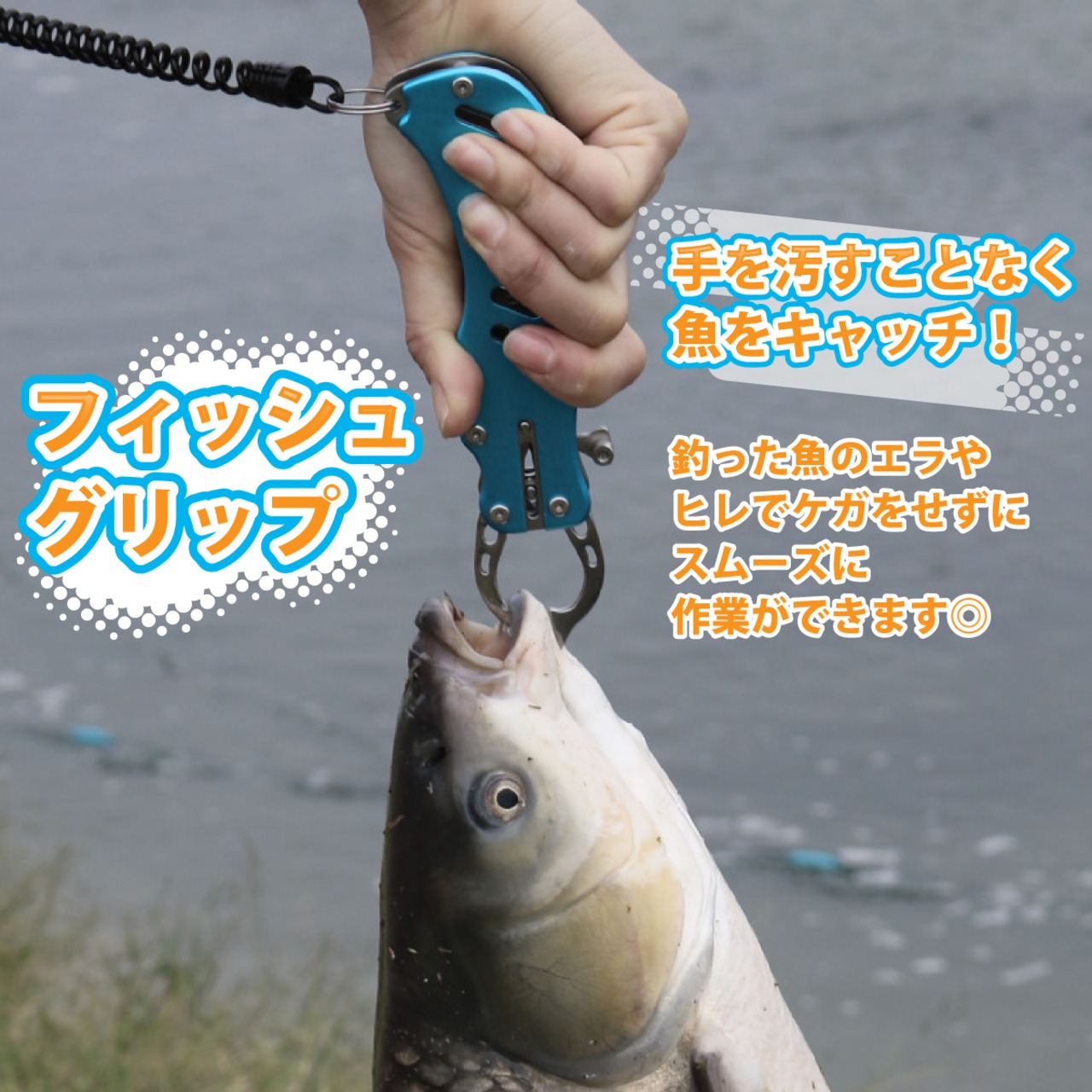フィッシュグリップは釣り上げた魚を素手で触ることなく釣り針を外したりすることが出来ます。