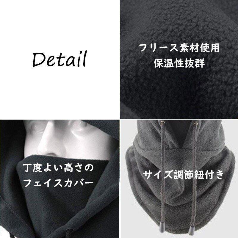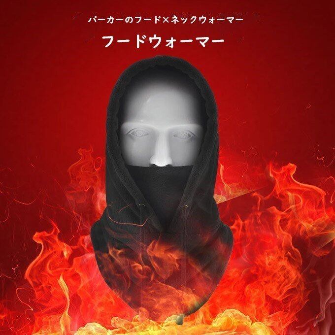 フリース素材で暖かく、ネックウォーマーとフードが融合した寒い季節の必需品アイテム!