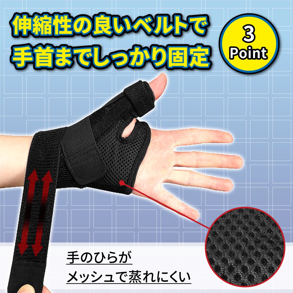 腱鞘炎や使い傷み等、安静が必要な痛みを取るのをサポートする親指用サポーターです。