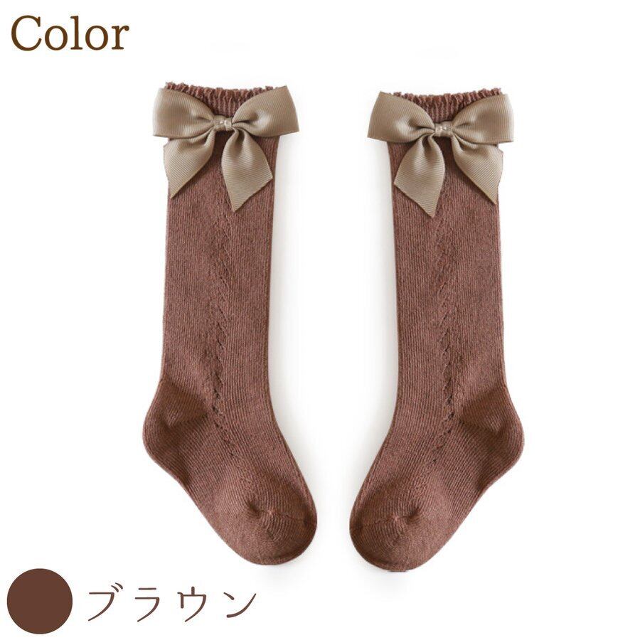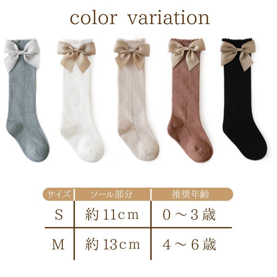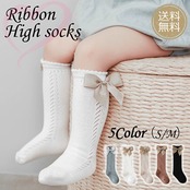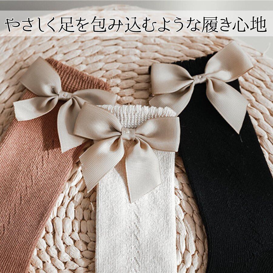 シンプルな靴下に大きなリボンのワンポイントが華やか。