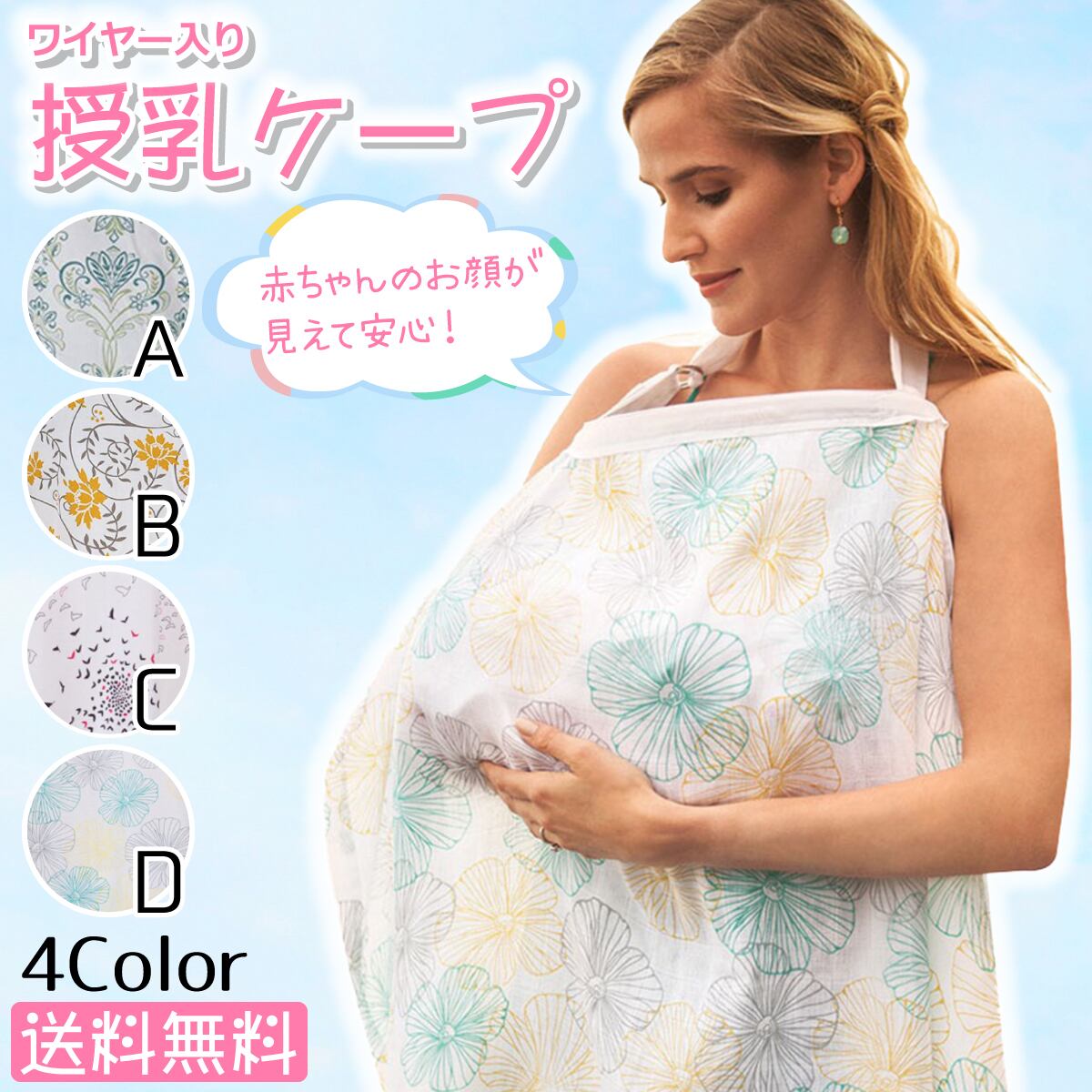 授乳ケープ ワイヤー入り 携帯ポーチ付き おしゃれ 授乳カバー かわいい 授乳服 安い 春 夏 秋 コットン 綿 授乳 ケープ マタニティ 出産祝い プレゼント