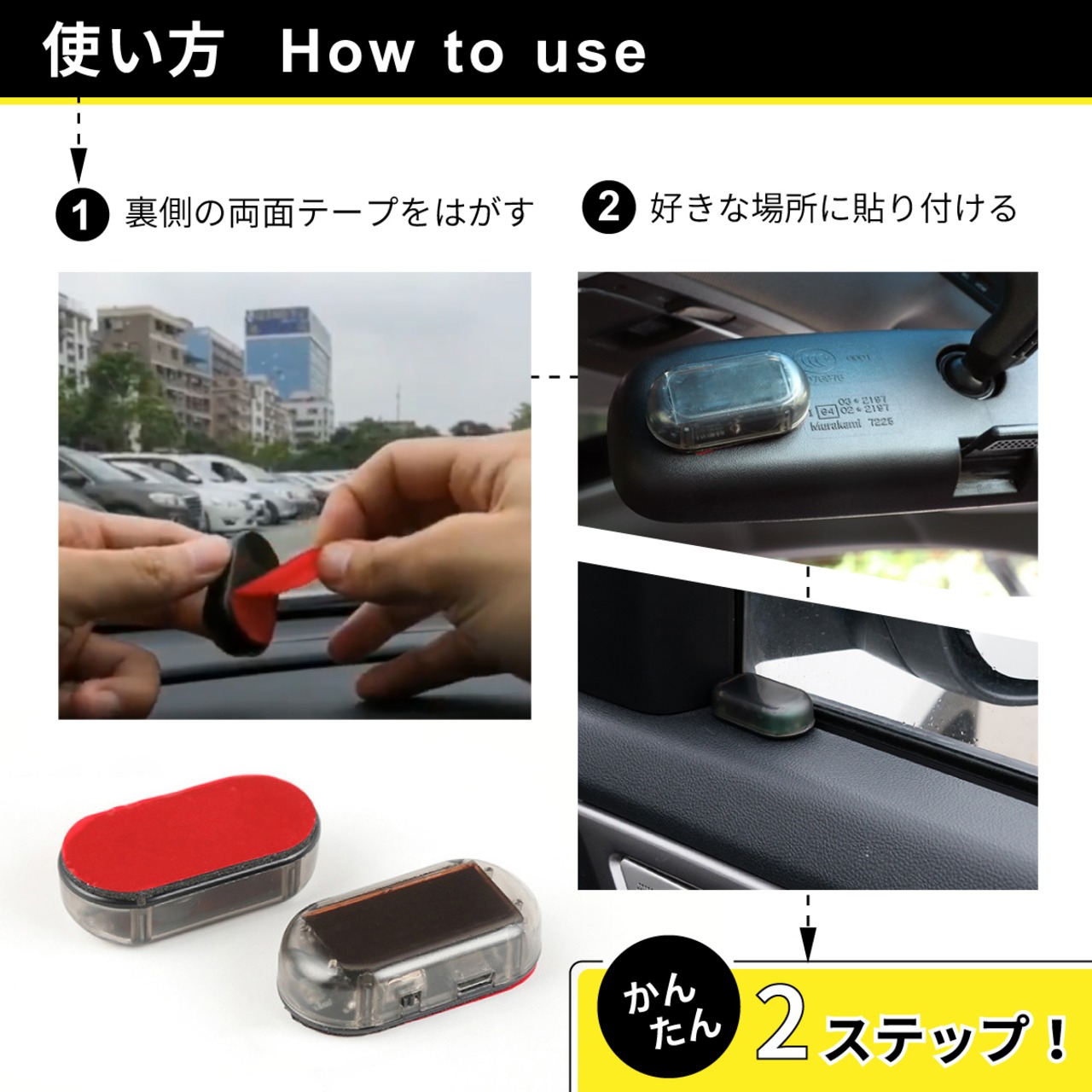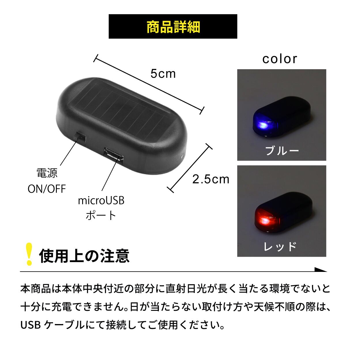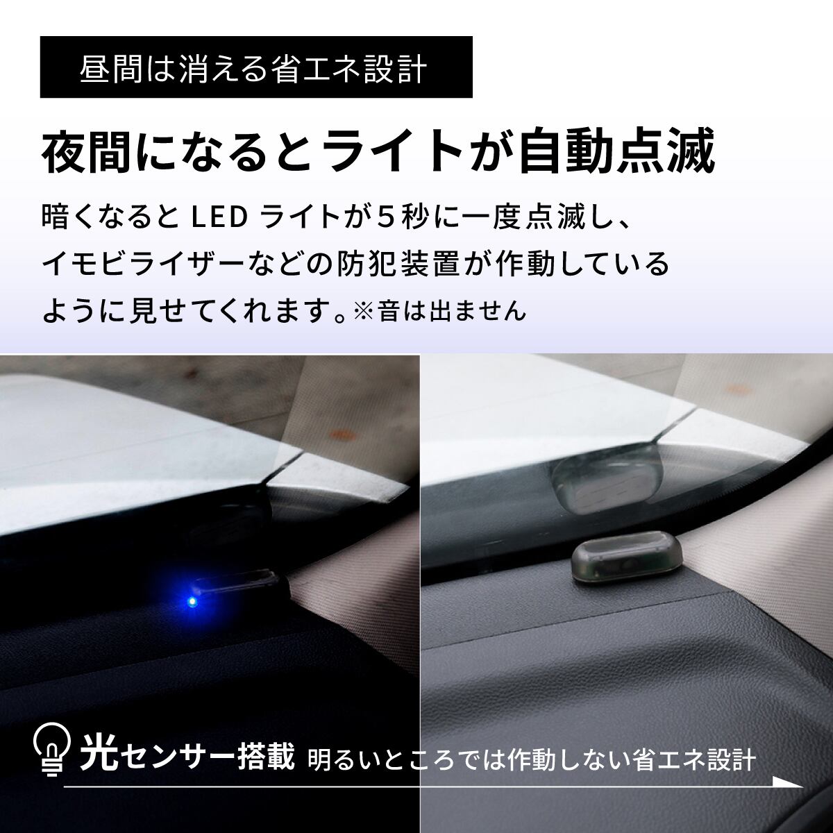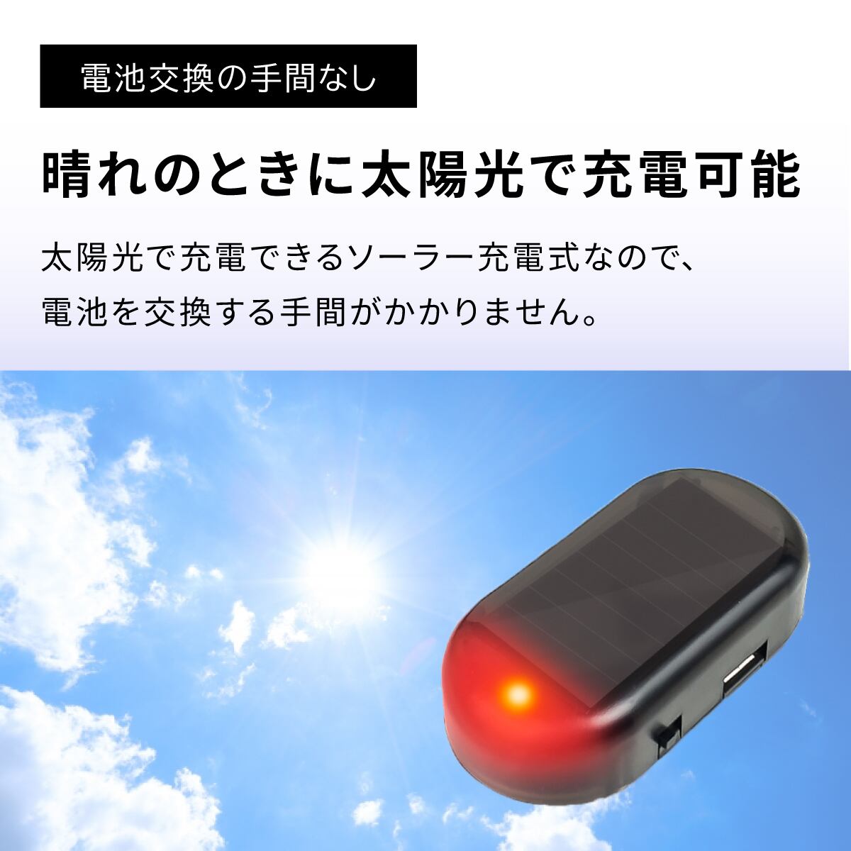 ダミー セキュリティライト 車 防犯グッズ LED 点滅 盗難防止 太陽光 自動充電 ソーラー 夜間 警戒灯 安心