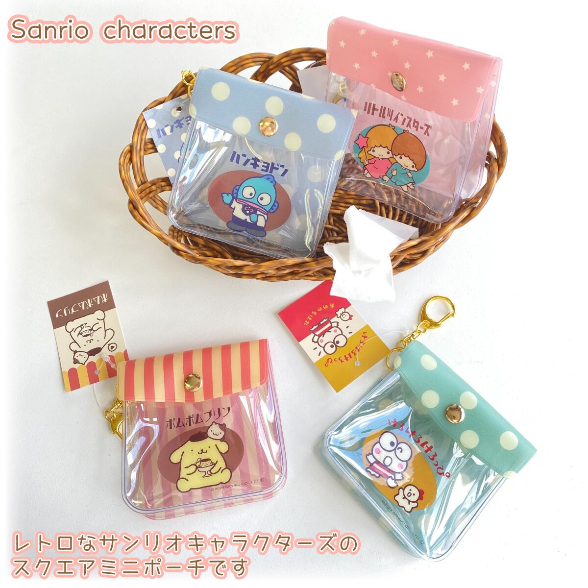 サンリオ ポーチ グッズ ポムポムプリン けろけろけろっぴ リトルツインスターズ ハンギョドン おしゃれ かわいい レトロ スクエアミニポーチ 小物入れ