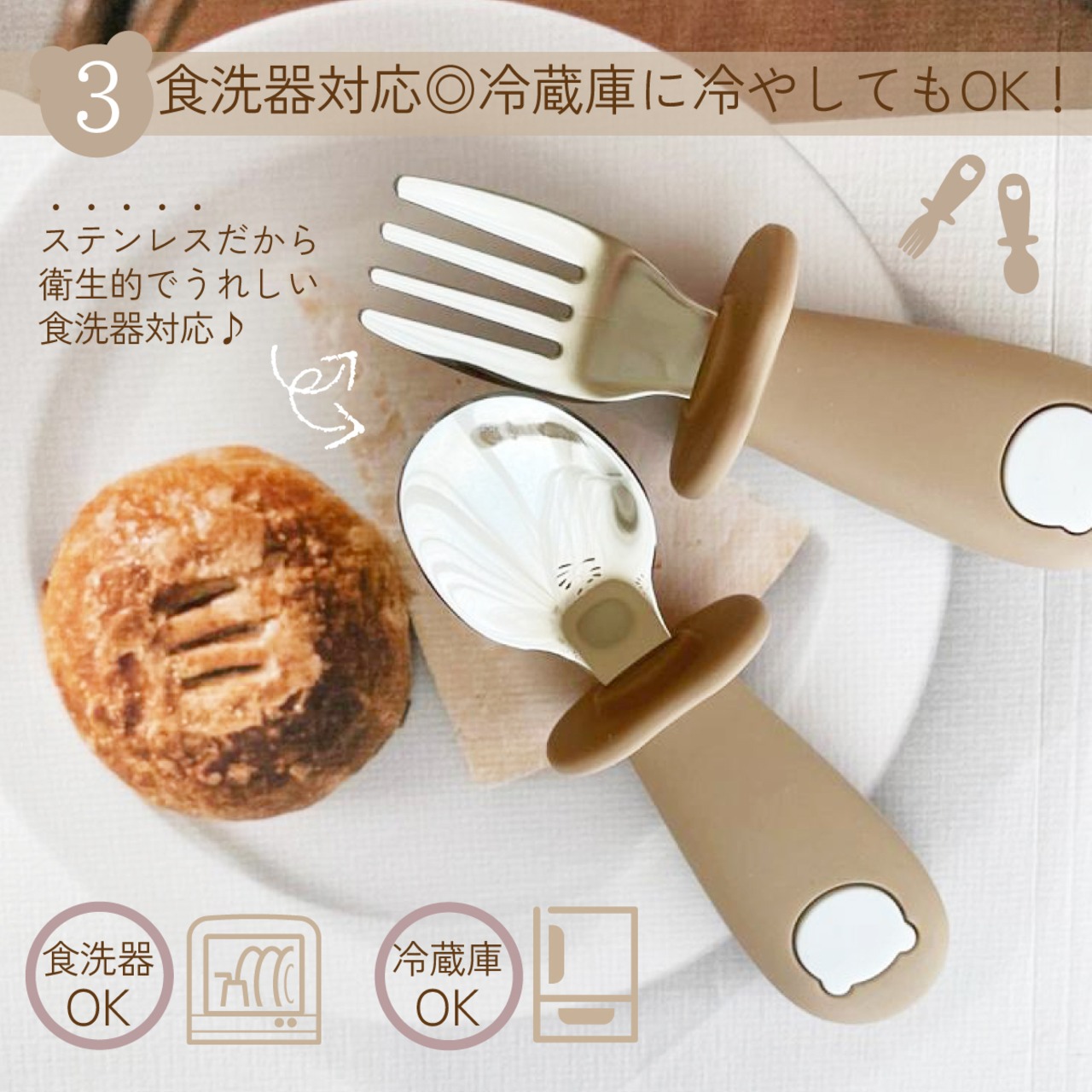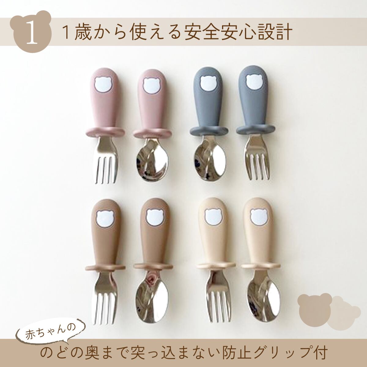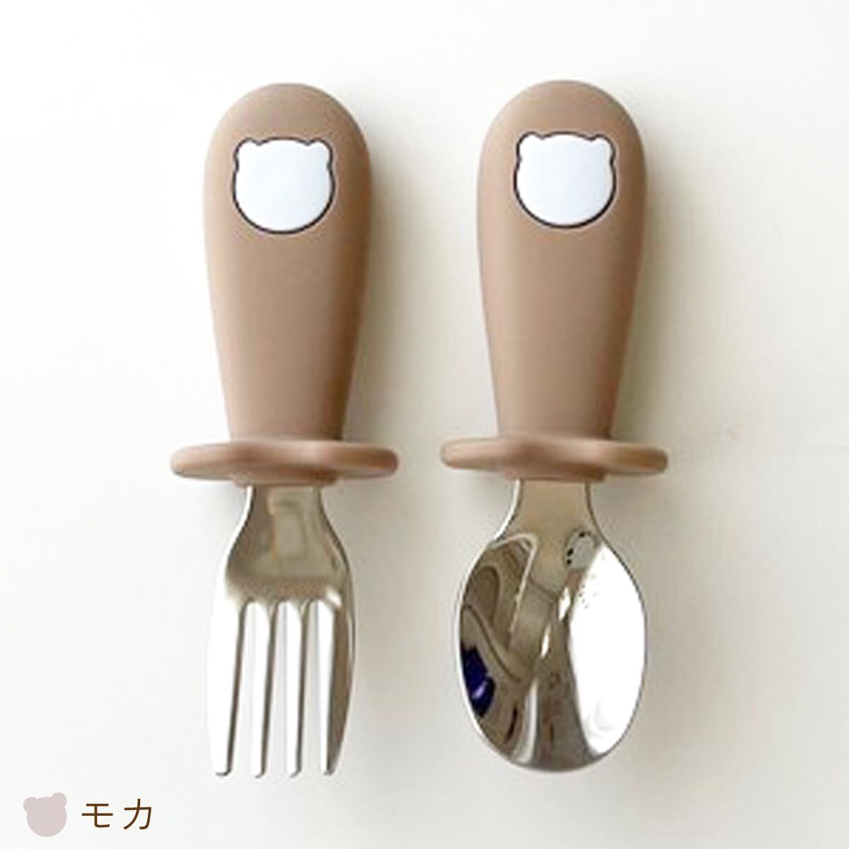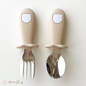 赤ちゃんからキッズまで握りやすいスプーンと フォークの2点セット。