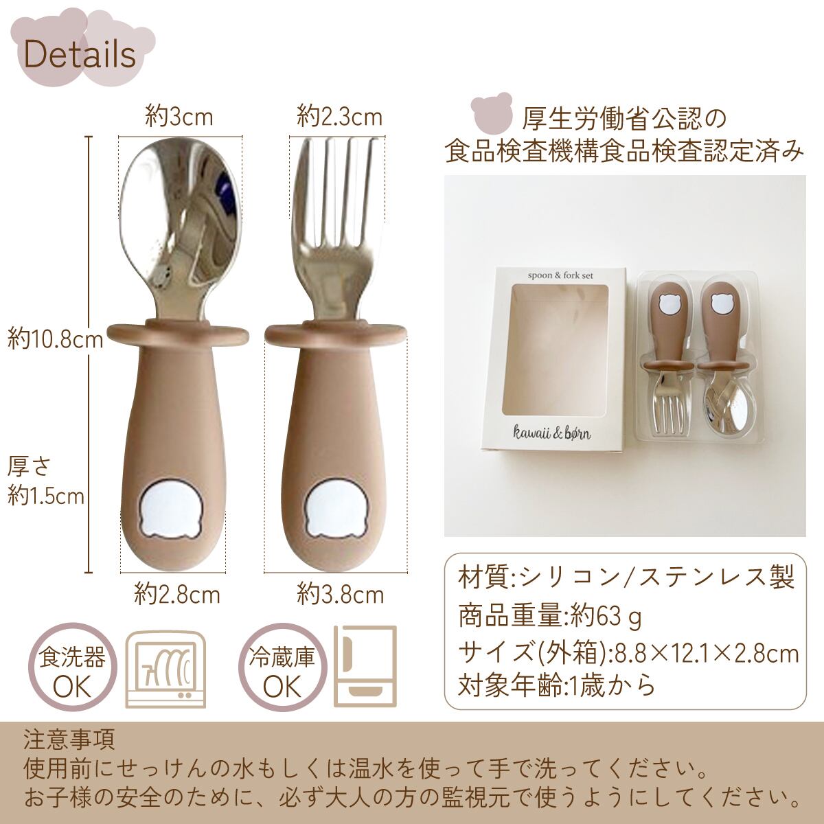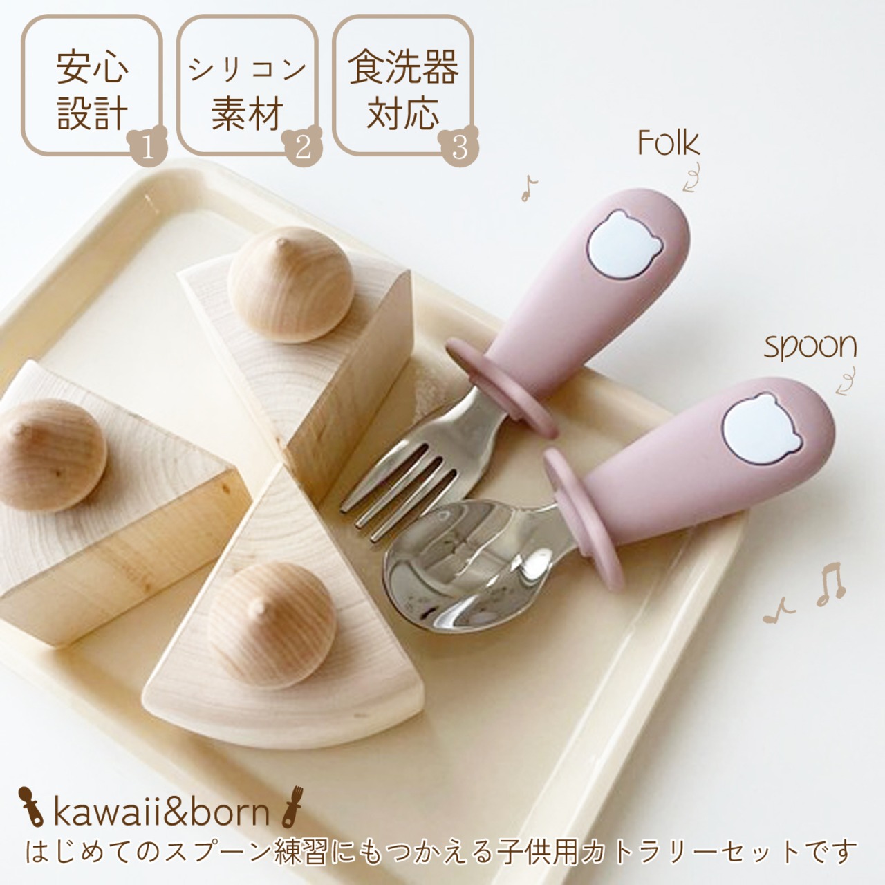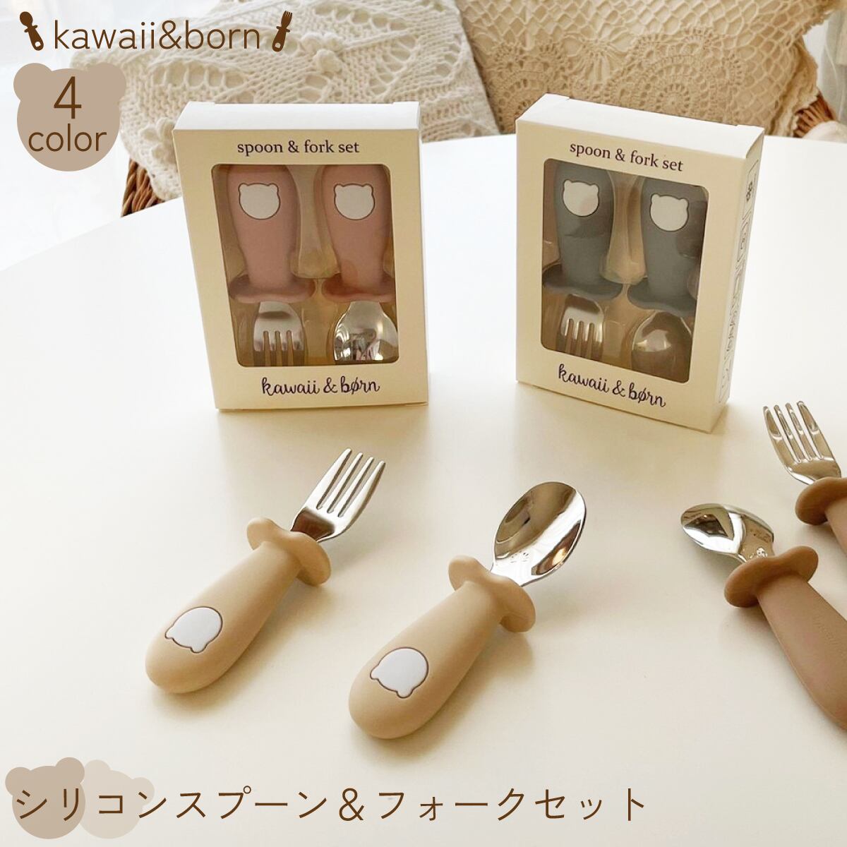 赤ちゃん スプーン フォーク 食器セット カトラリー 離乳食 プレゼント おしゃれ ベビー食器 かわいい 出産祝い くすみカラー kawaii&born