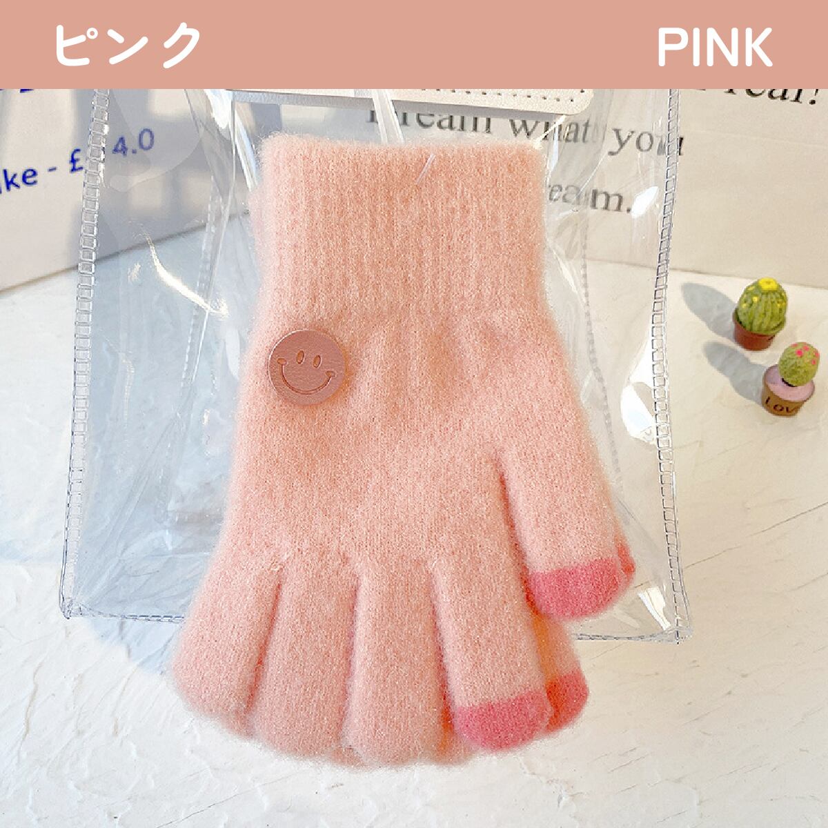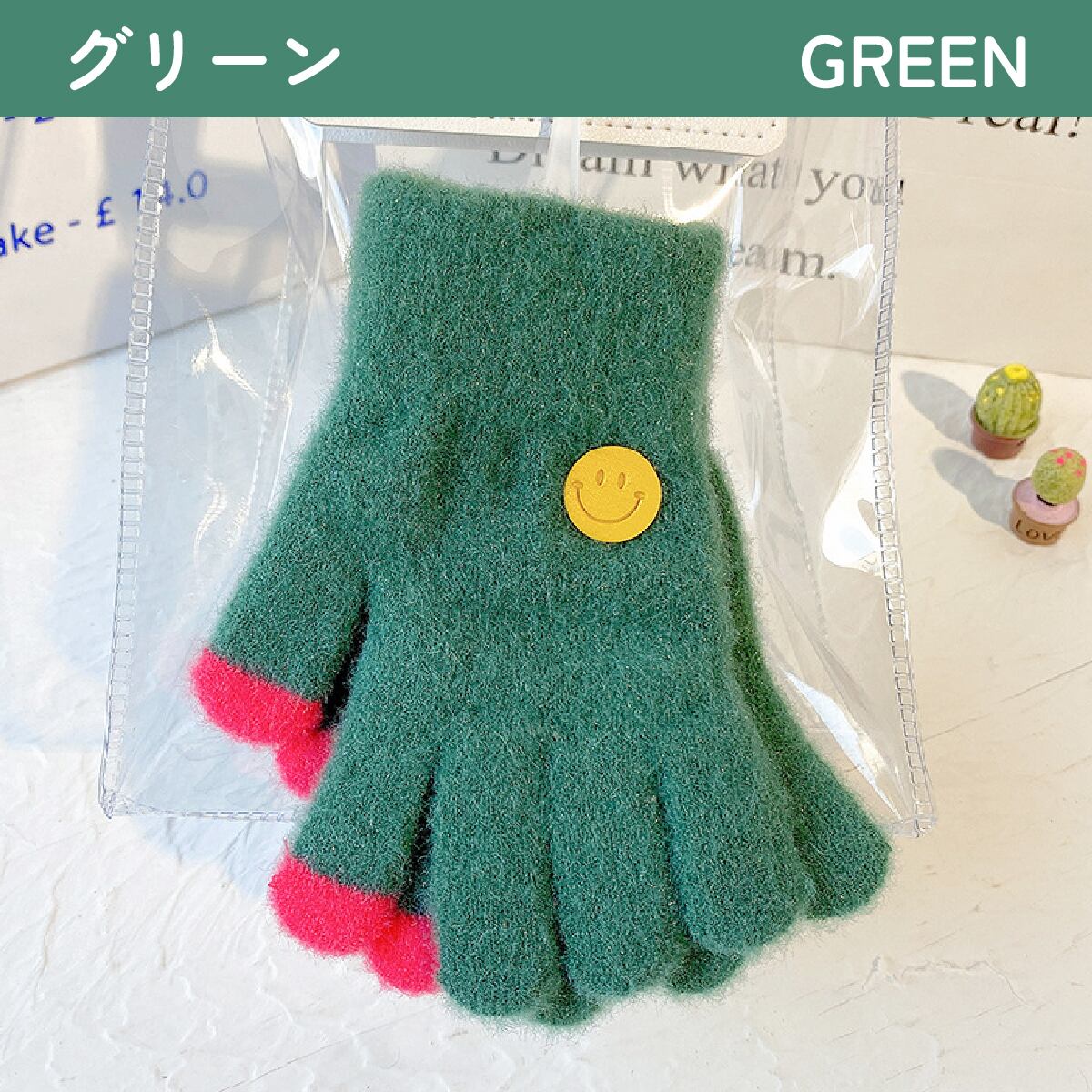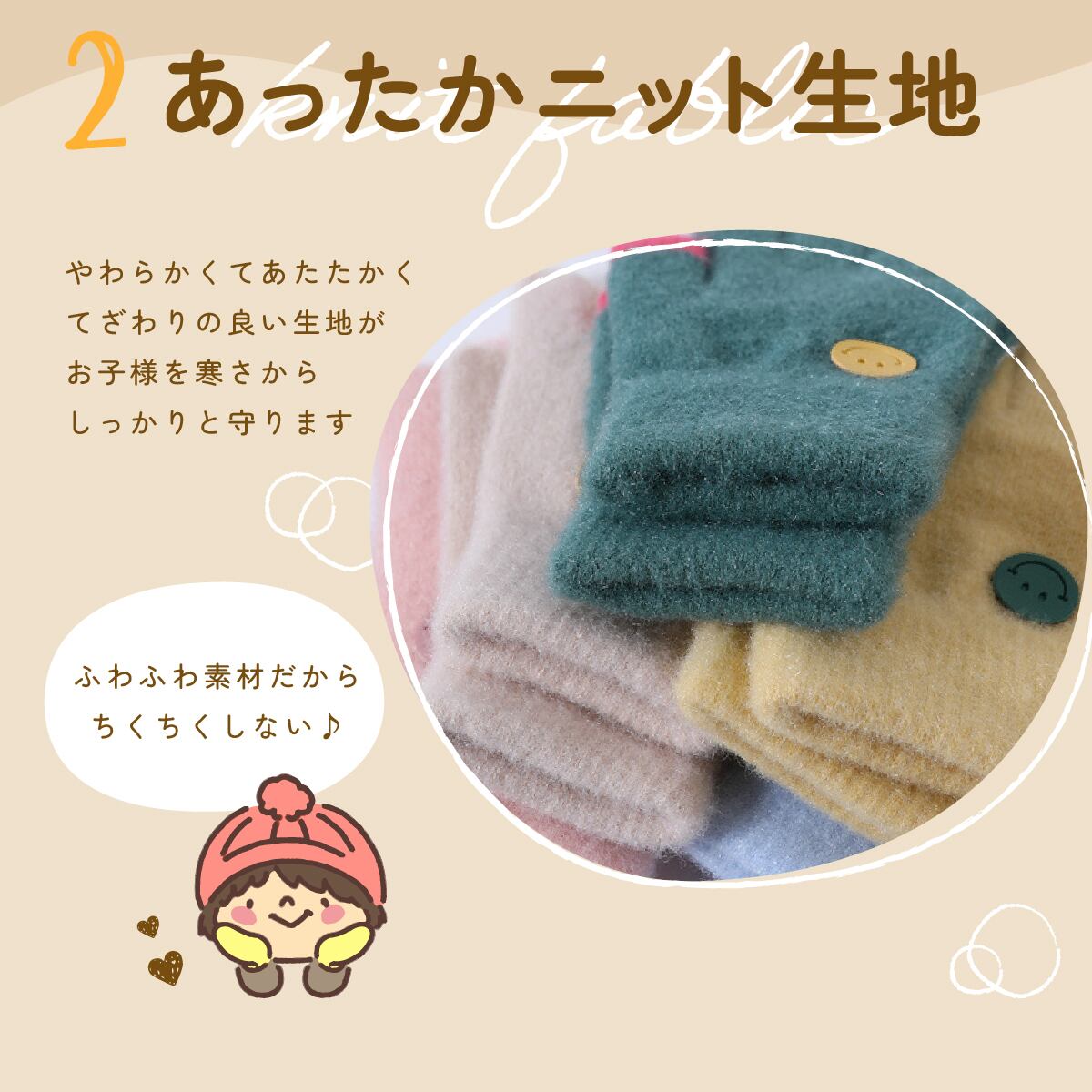 ・ニット生地の二重構造で暖かい、防寒対策にピッタリなキッズ用手袋です。