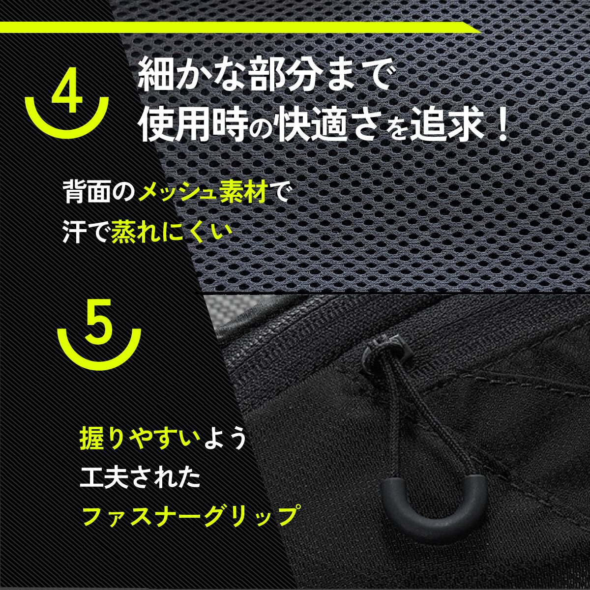 ・防水加工が施された表面で、ランニング中の汗や突然の雨も気にせず使えます。