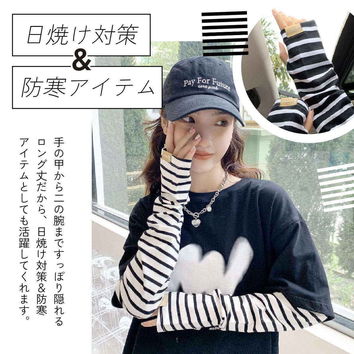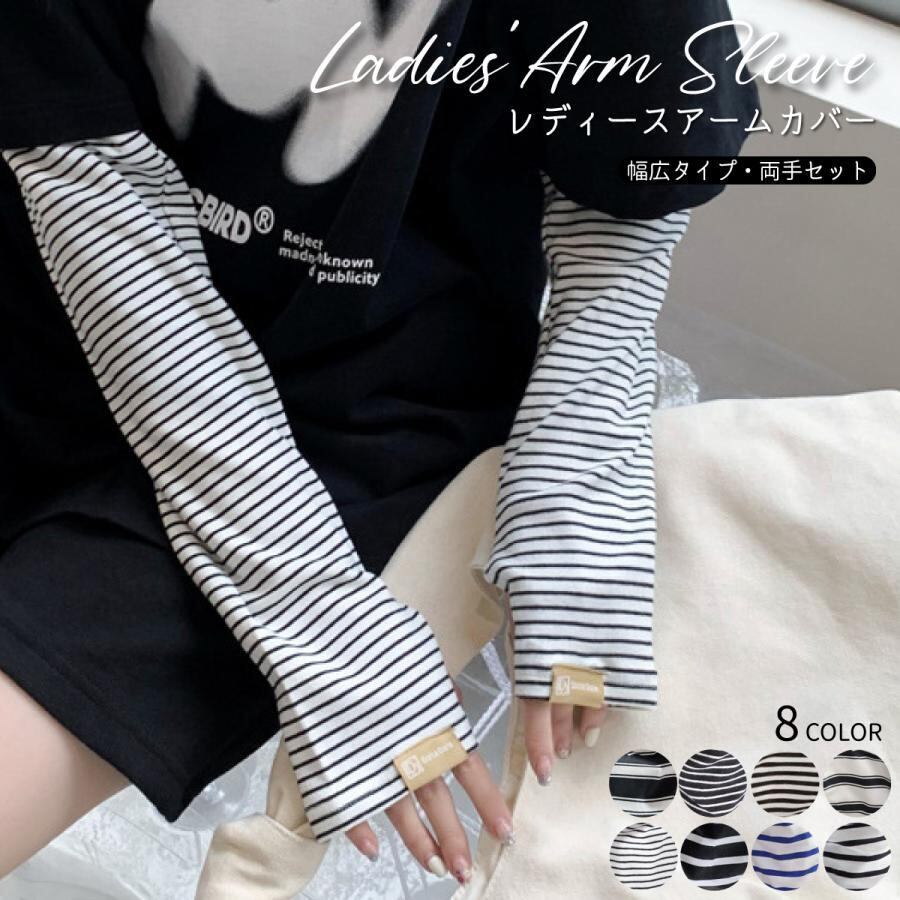 アームカバー レディース ボーダー ゆったり おしゃれ 日焼け対策 ロング メンズ 綿混 春夏 秋冬 作業 自転車 運転 お出かけ アウトドア