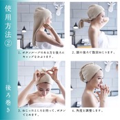 タオルで洗髪後の髪を挟んでねじり上げ、手前のボタンで留めて使用します。