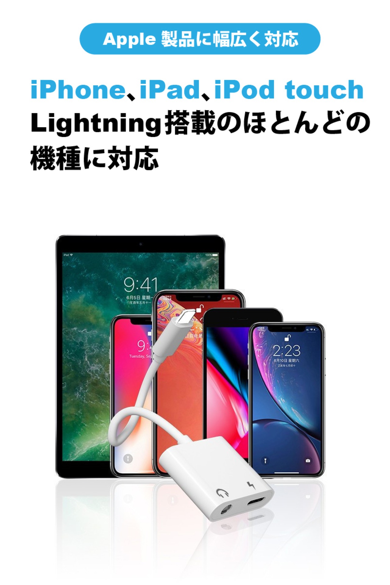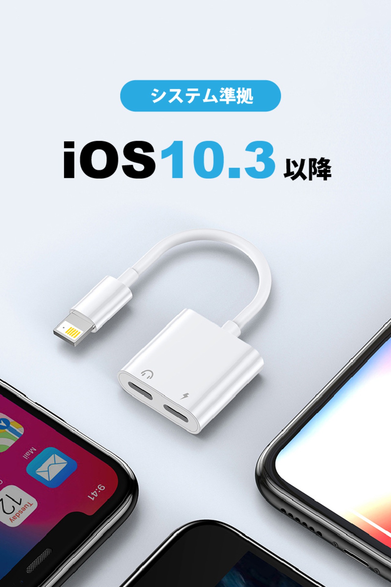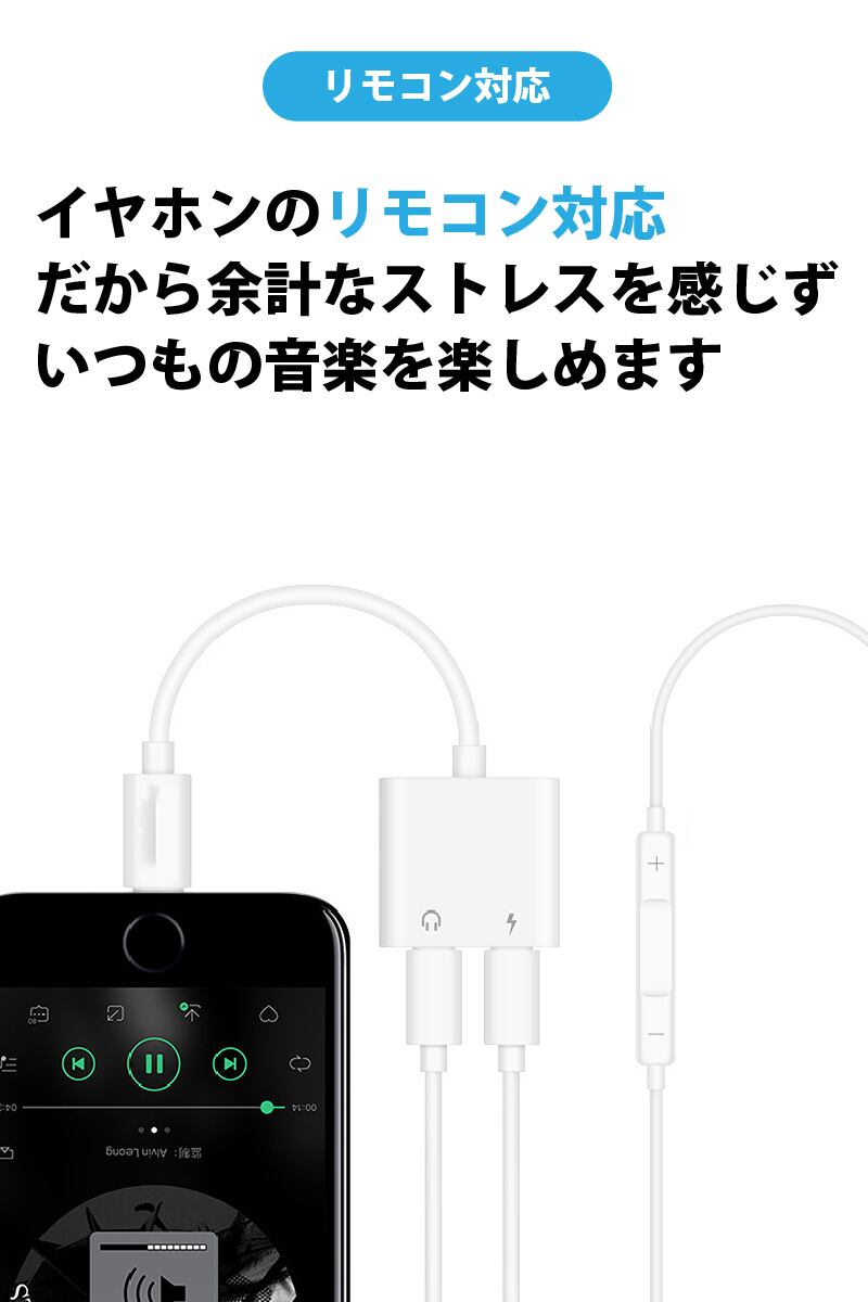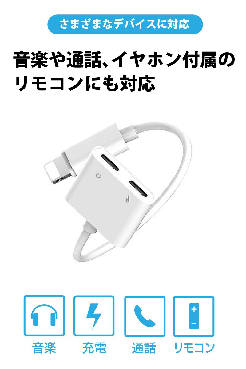変換アダプター iPhone lightning イヤホン 充電 音楽 2in1 通話 便利 ライトニング 高音質