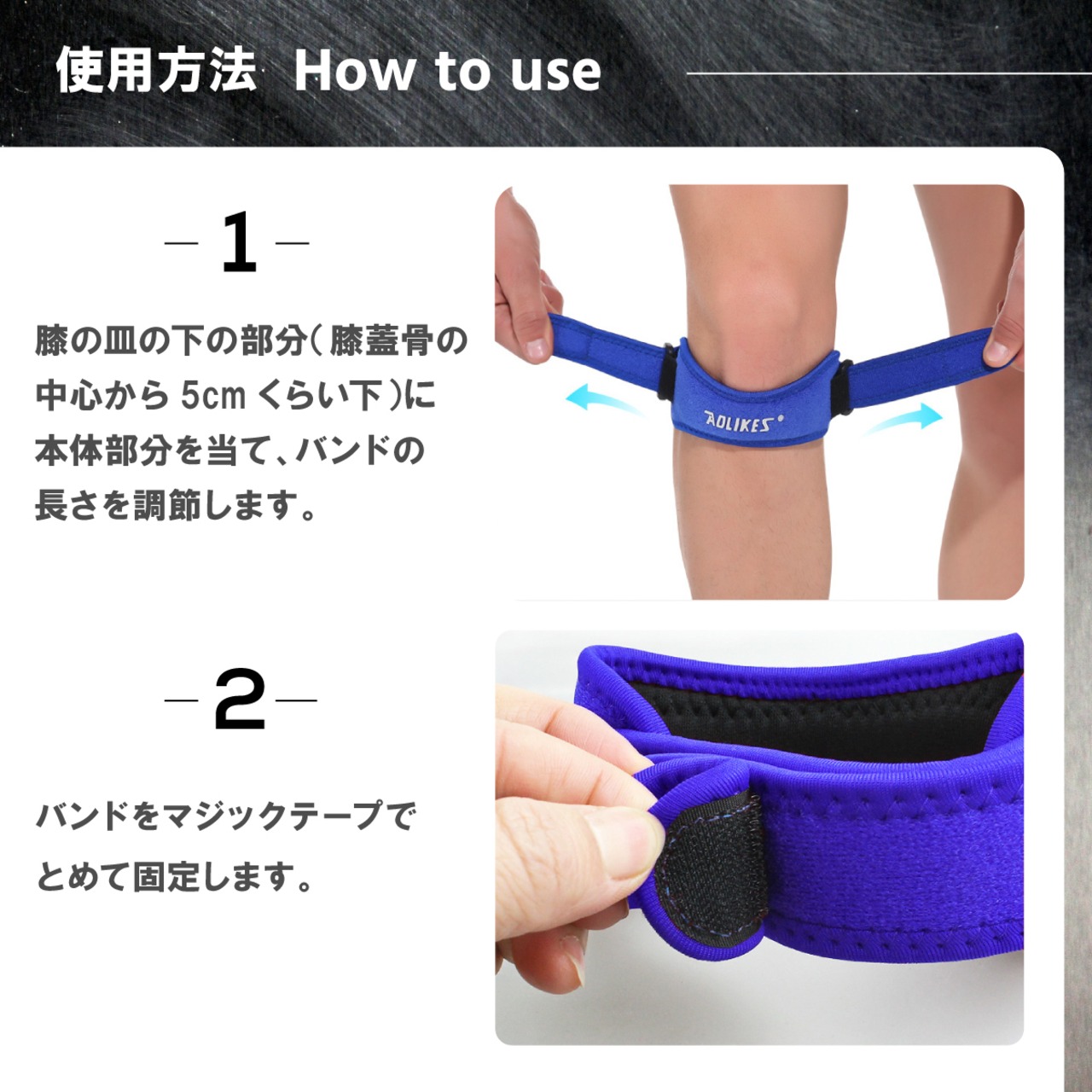 マジックテープで膝回りをお好みの強さで固定して、