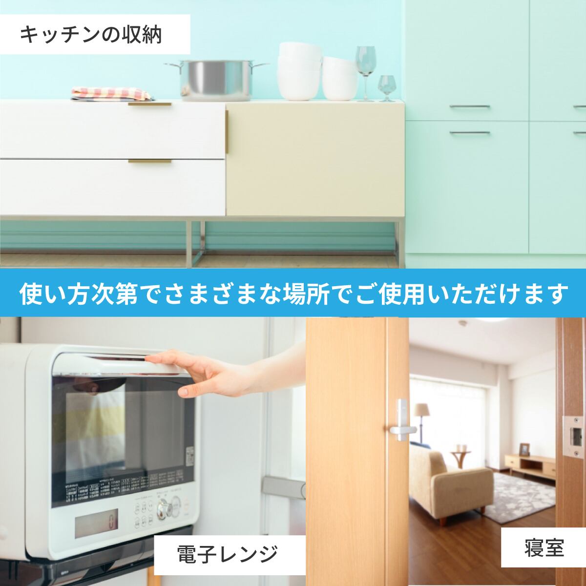 子どもやペットに開けてほしくないような冷蔵庫やドア、寝室やバスルームに