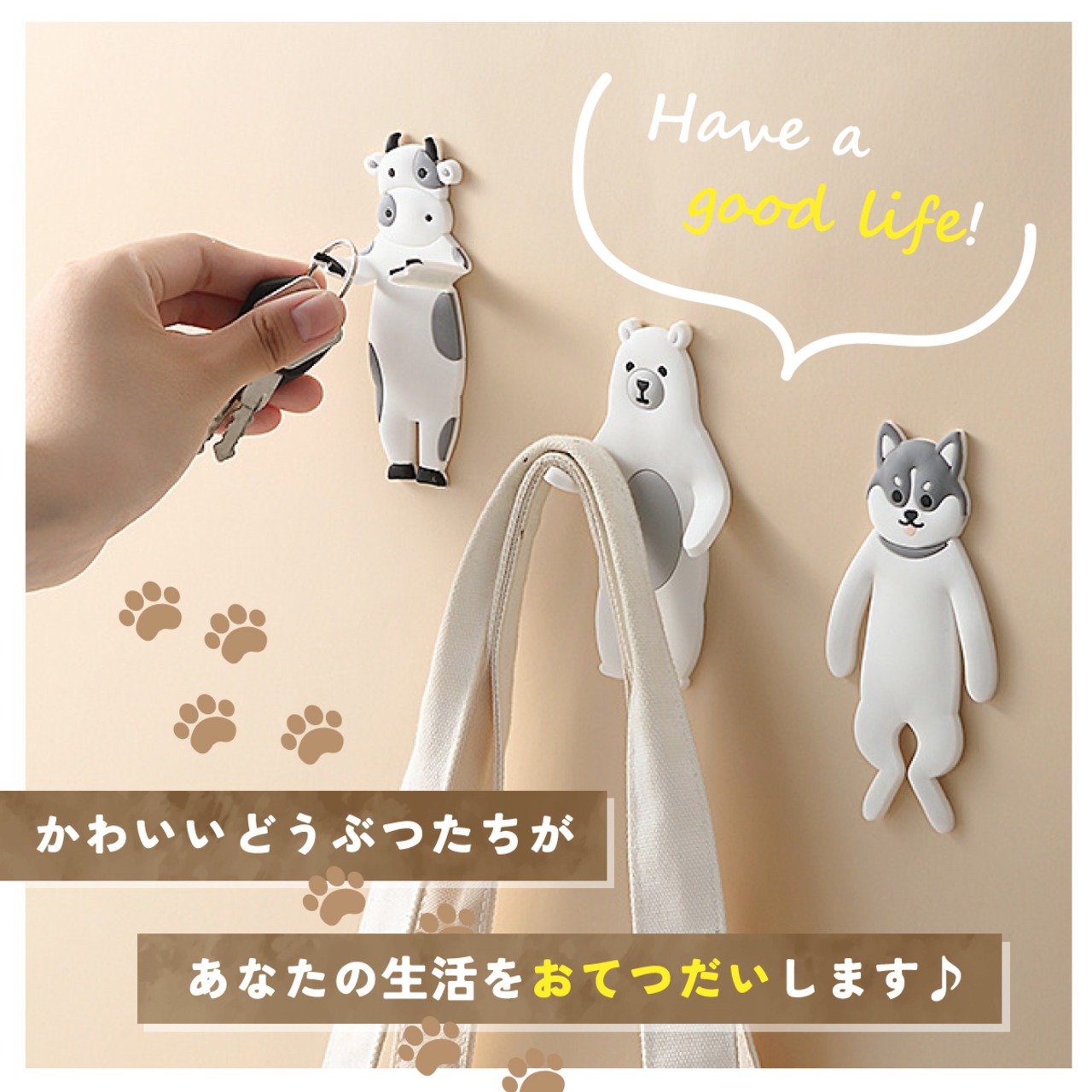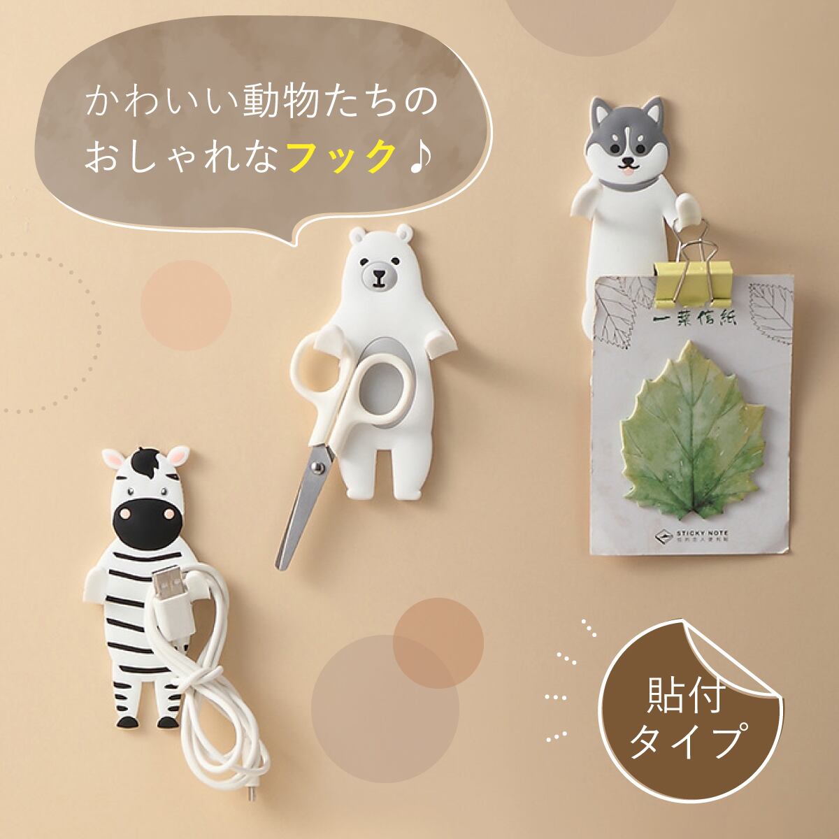 壁掛けフック おしゃれ 石膏ボード 両面テープ かわいい ウォール 玄関 台所 鍵 接着 動物 アニマル 小物 雑貨 収納 ハンガー 洗える