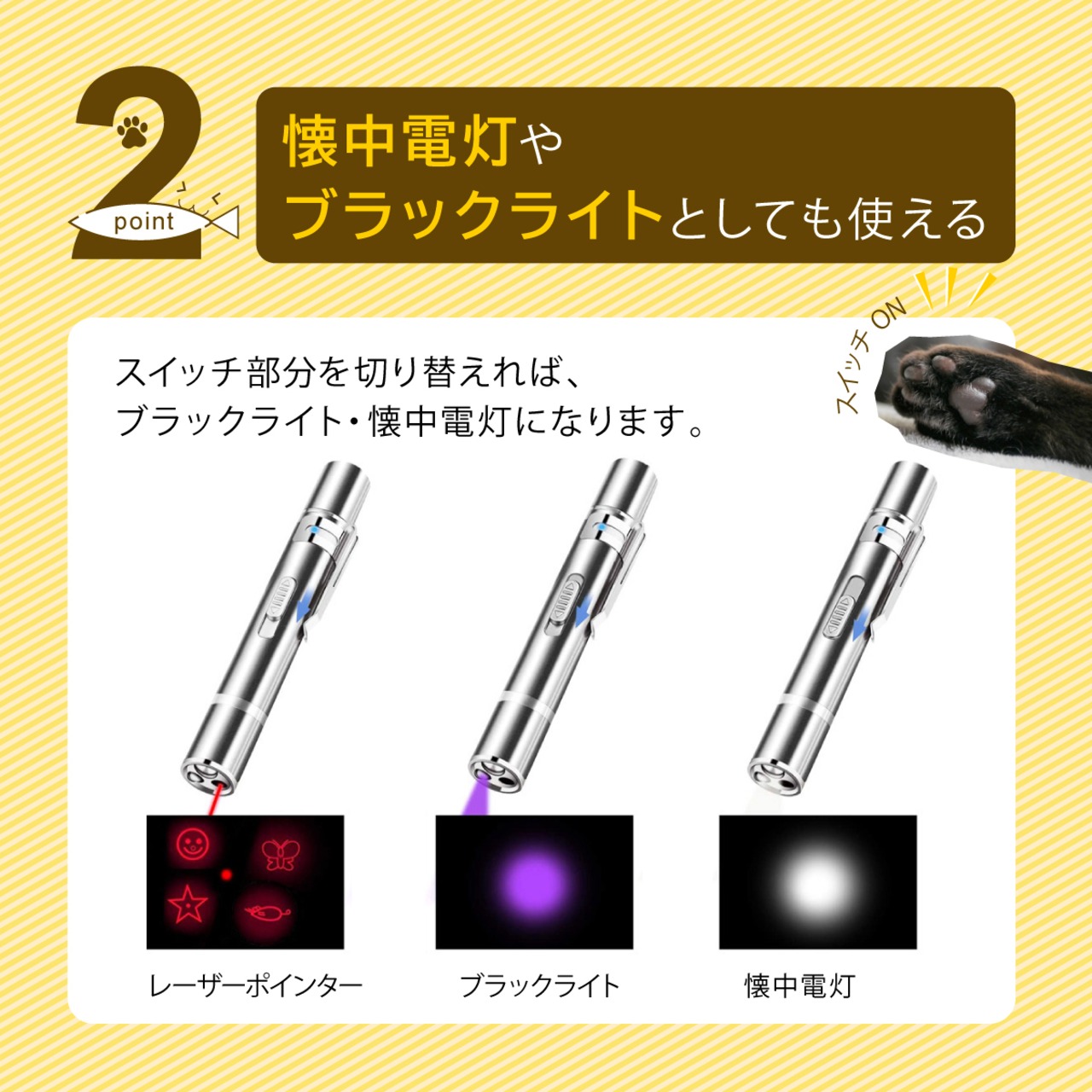 猫おもちゃ LEDポインター 猫グッズ ねこじゃらし LED 懐中電灯 多機能 コンパクト USB充電式 緊急用 災害