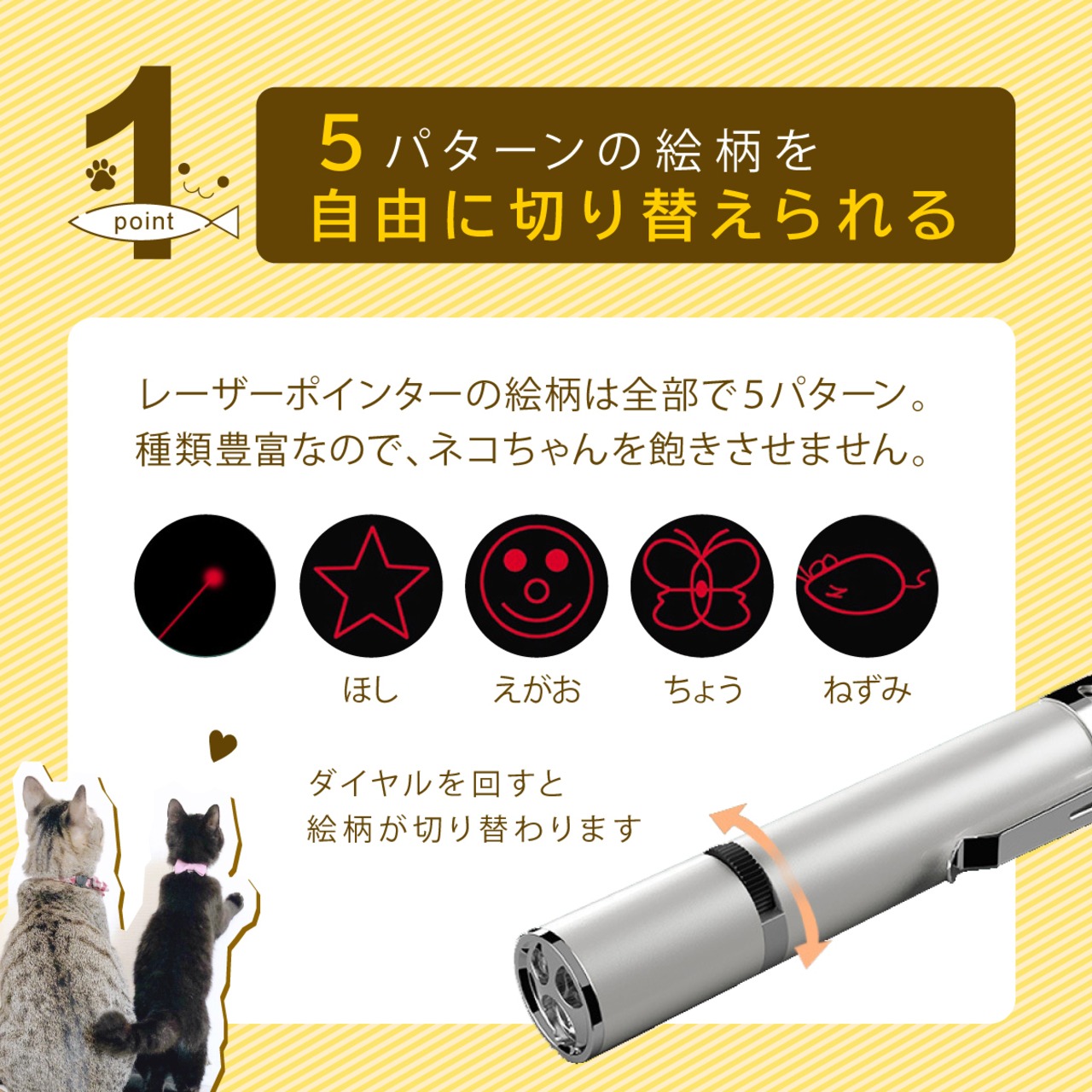 また、ダイヤルを回すと、LEDの先の絵柄を切り替えることができます。