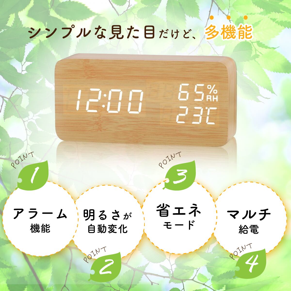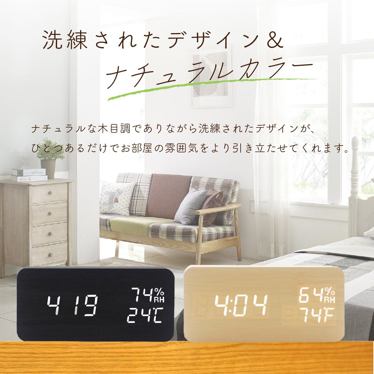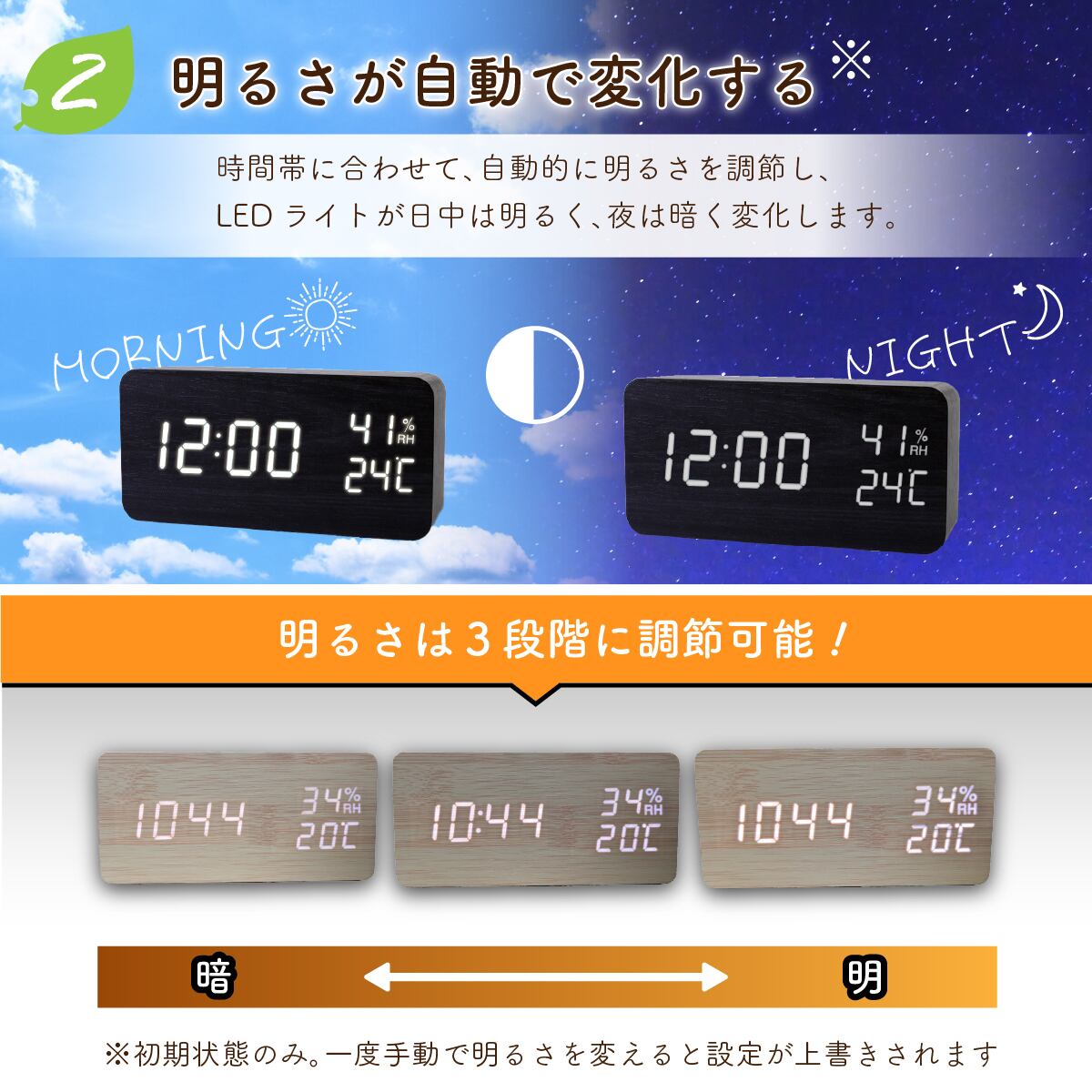 デジタル 置き時計 LED 光る おしゃれ 多機能 目覚まし めざまし USB充電式 大音量 温度計 カレンダー アラーム 木目調 卓上 インテリア