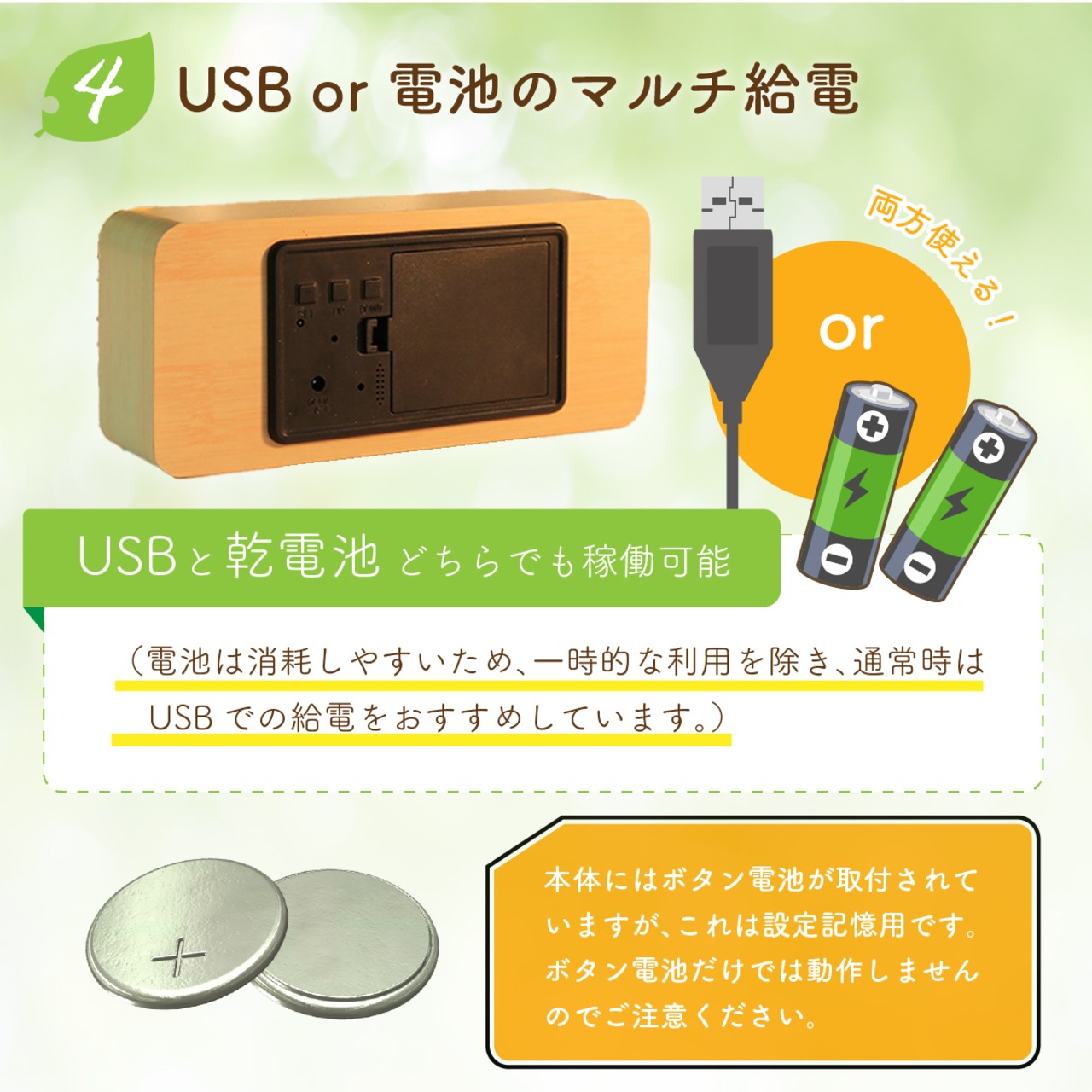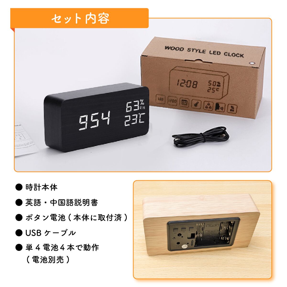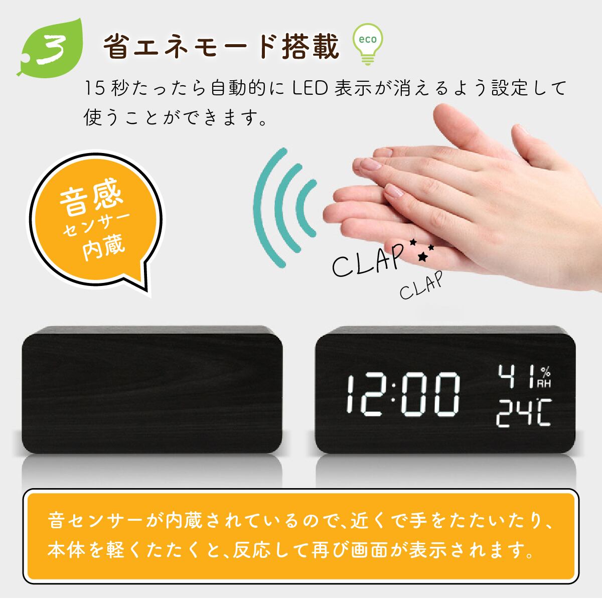 デジタル 置き時計 LED 光る おしゃれ 多機能 目覚まし めざまし USB充電式 大音量 温度計 カレンダー アラーム 木目調 卓上 インテリア