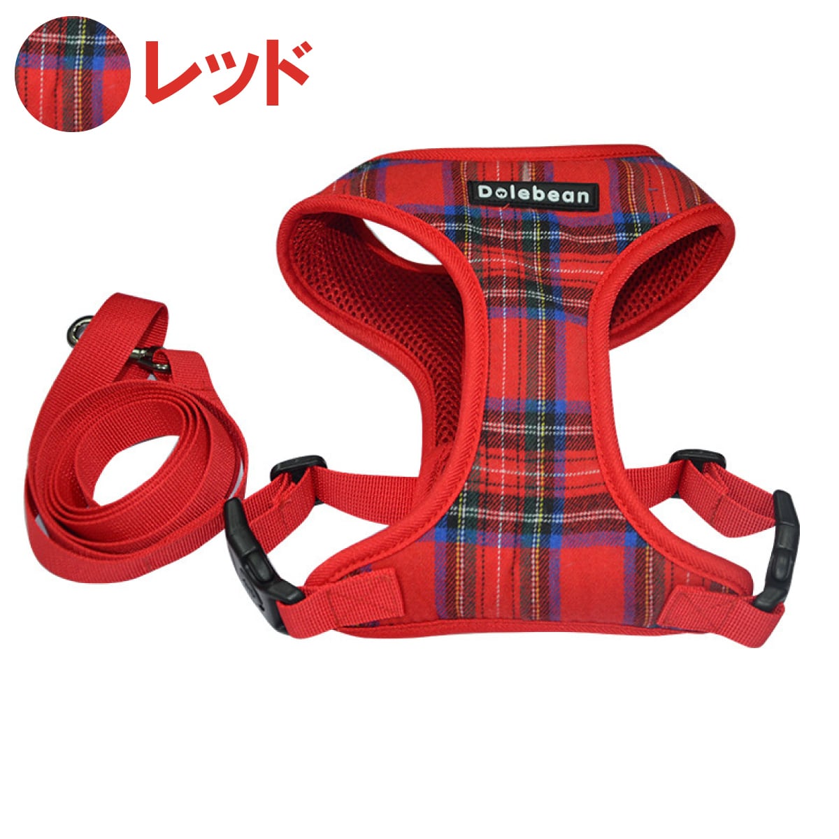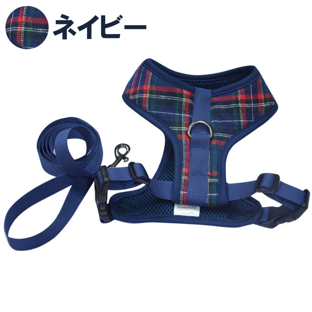 チェック柄がおしゃれなハーネスとリードのセットです。