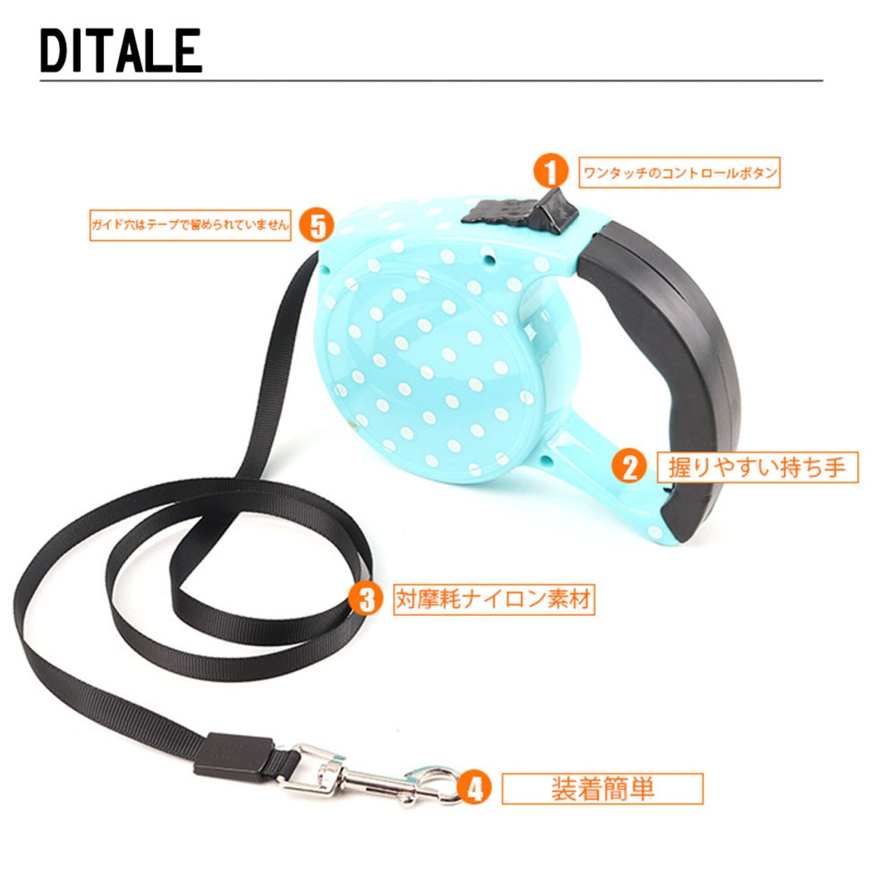 リード 犬 伸縮 丈夫 おしゃれ 小型犬 5m 子犬 フック付き かわいい 長さ調整可 おすすめ ワンタッチ操作 チェック 水玉