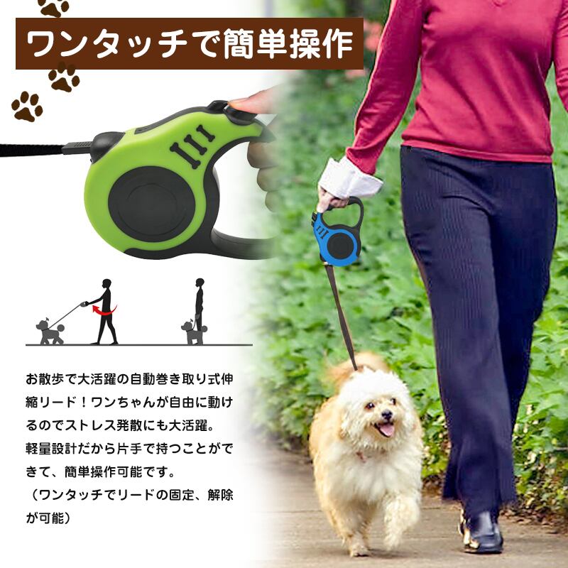 リード 犬用リード 伸縮 5m ロック機能 ワンタッチ 巻き取り ペット 小型 中型 おしゃれ かわいい 軽量