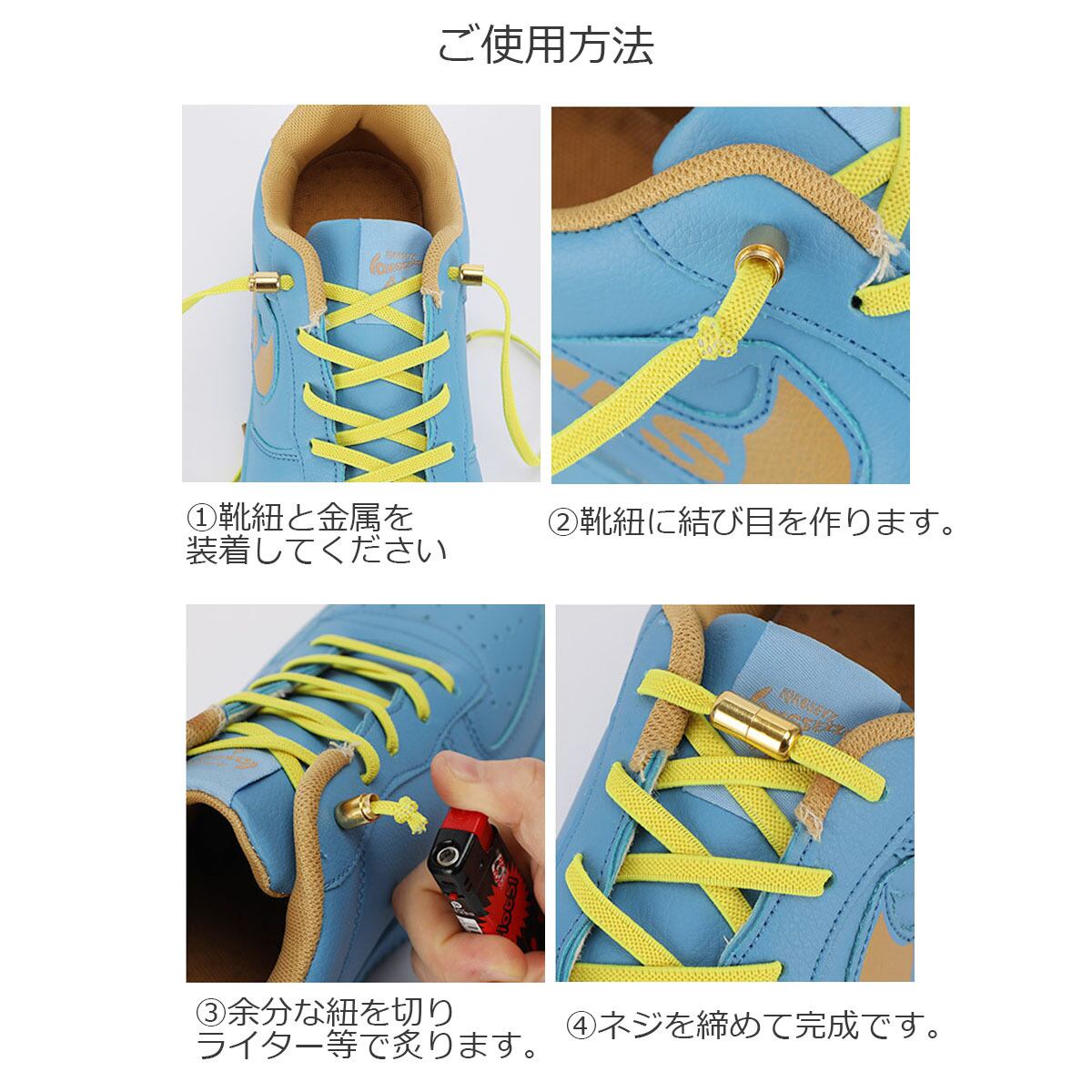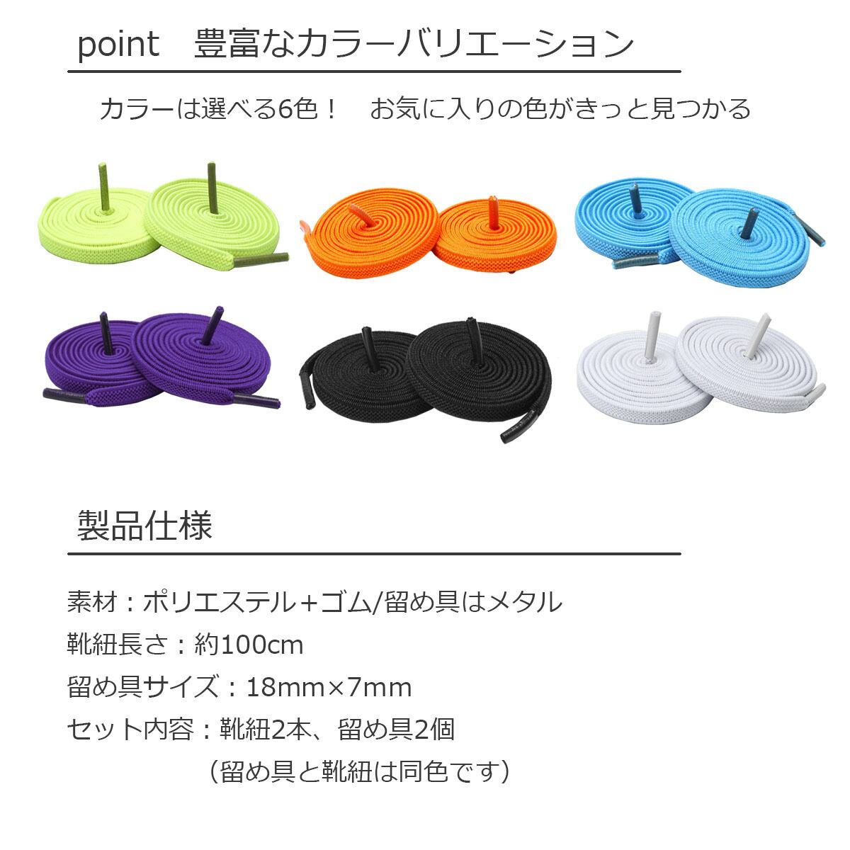 靴ひも 紐 結ばない ゴム 平紐 ほどけない おしゃれ 伸縮性 シューレース 1m スニーカー 運動靴 スポーツ ランニング 登山 オレンジ 白 黒 青 緑