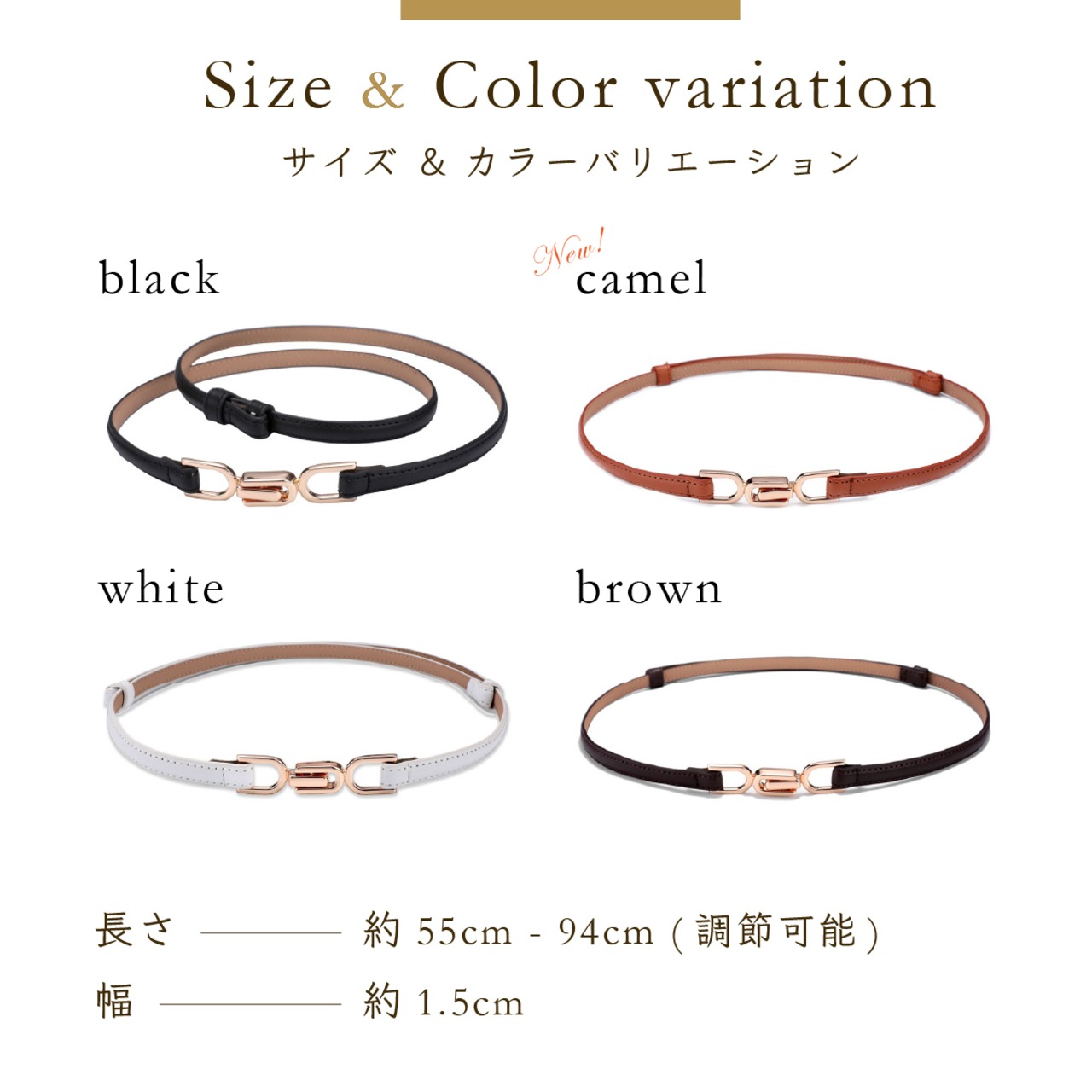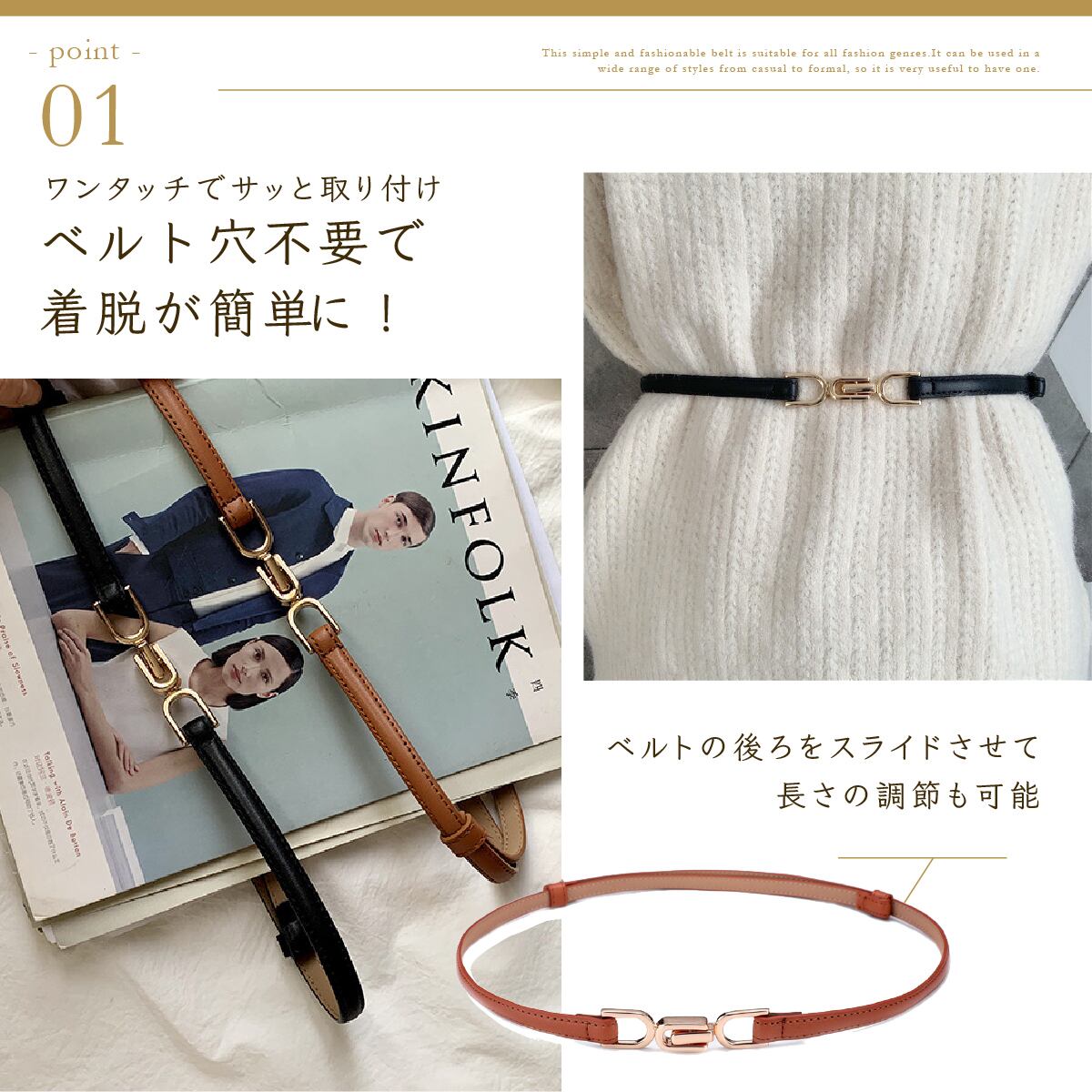 レディース ベルト 細ベルト ベルト穴不要 レディース スリムベルト シンプル アクセサリー 小物 細い 調整可能 白 女性用 黒 レザー調 茶色