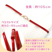 レディース ベルト 細い おしゃれ サイズ調整可能 赤 ネイビー 白 黒 穴なし 細ベルト 無段階 フリーサイズ バックル アクセント エナメル フォーマル