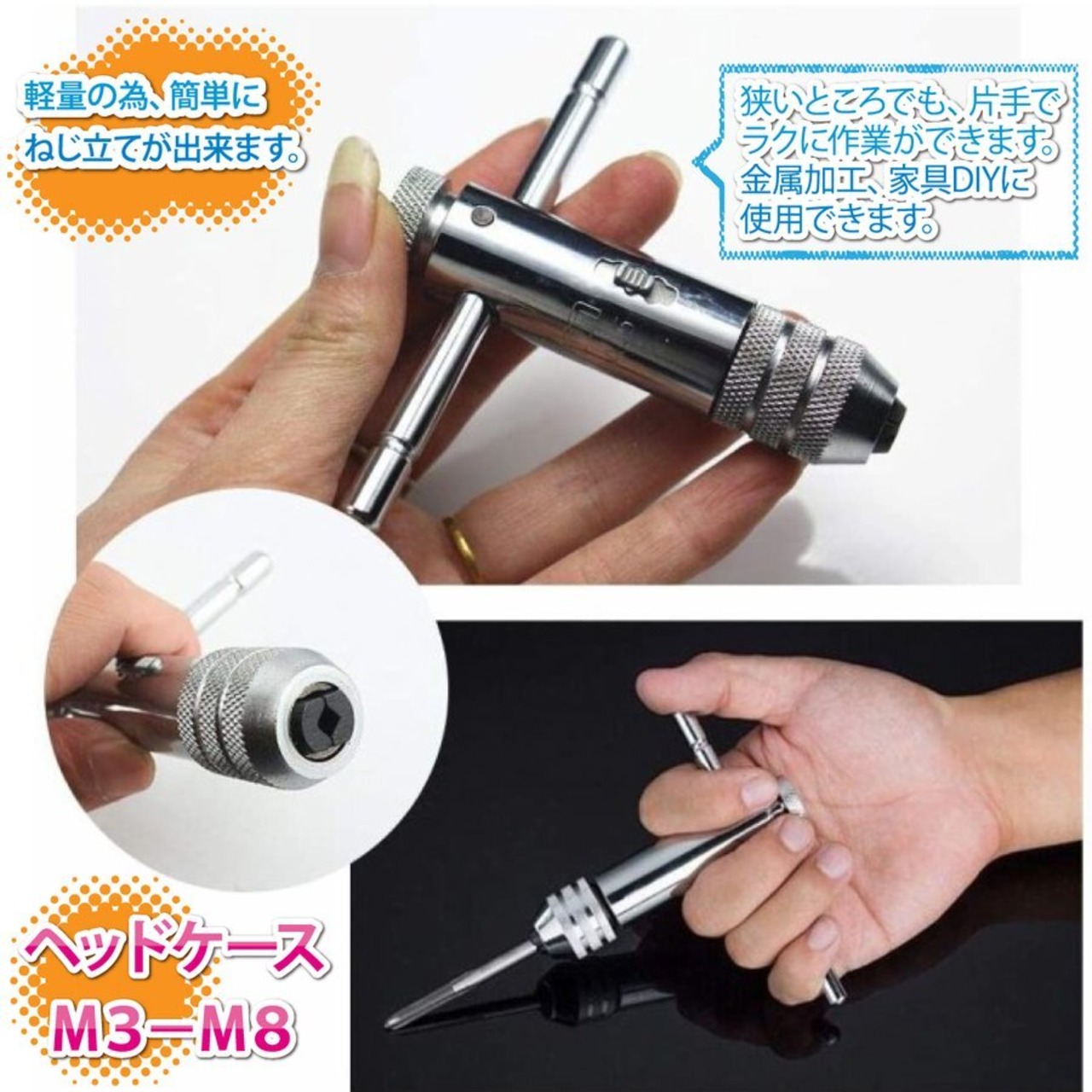 タップハンドル ラチェット ホルダー ハンドル T型 ネジ ドリル ねじ山 レンチ 接続 工具 穴あけ 調整可能 ねじ切り
