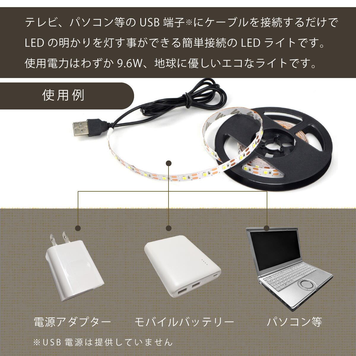 テープライト led 間接照明 usb 2m 部屋 インテリア イルミネーション スイッチ 電球色 昼光色 DIY 簡単 両面テープ